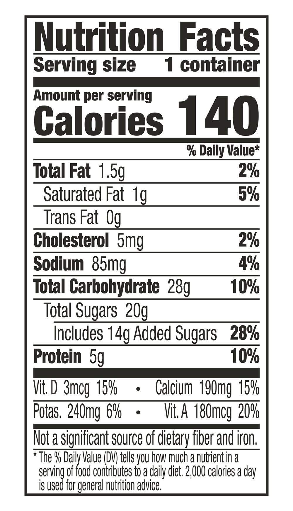 Ingredients: Cultured Grade A Low Fat Milk, Sugar, Blueberries, Water, Modified Food Starch, Raspberries, Strawberries, Contains 1% or Less of: Blackberries, Kosher Gelatin, Corn Starch, Pectin, Natural Flavor, Vitamin A Acetate, Vitamin D3 Contains: Milk