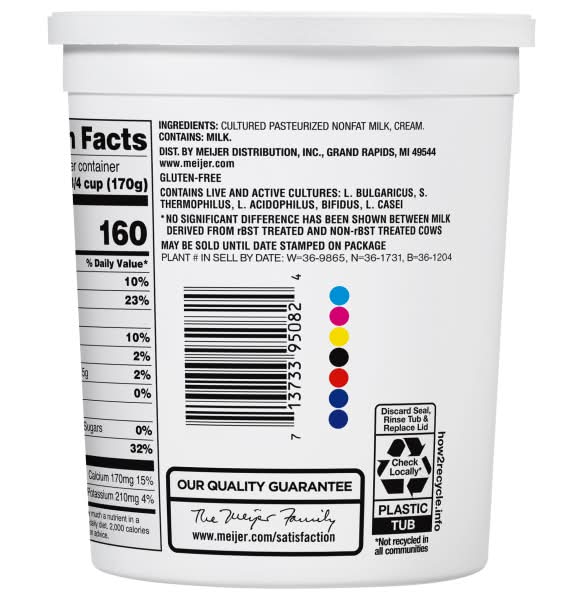 This smooth and creamy yogurt can be enjoyed on its own or served with your favorite fruits to give it an extra ounce of sweetness. Meijer Greek Yogurt is a perfect balance of sweet and tart. Excellent for lunches!
