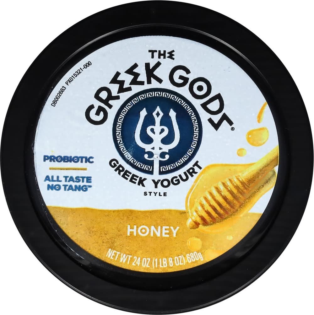 No artificial flavors. Probiotic. All taste no tang. The days of sour, tangy yogurt are over! For years, we've been mastering the art of yogurt, crafting The Greek Gods to deliver a deliciously tang-free taste experience in every spoonful. And the texture? Super silky smooth! Each delectable bite of our cold world style yogurt will make you say Oh My Greek Gods • Flavor: Honey • Hain Celestial Group, Lake Success, NY 11042 • Packaging: Reusable