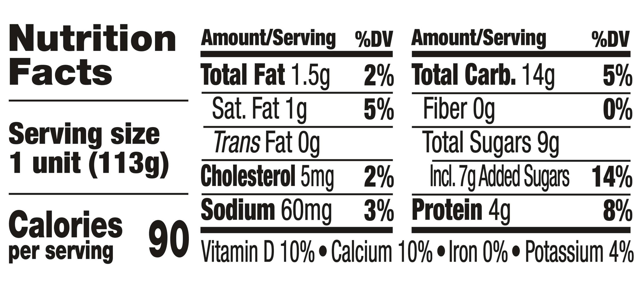 Ingredients: CULTURED REDUCED FAT MILK, WATER, CANE SUGAR, CORN STARCH LESS THAN 1%: PECTIN, NATURAL FLAVORS, LEMON JUICE CONCENTRATE, VITAMIN D3, LIVE CULTURES L. BULGARICUS (2), L. LACTIS, S. THERMOPHILUS (2), LIVE AND ACTIVE PROBIOTIC B. LACTIS DN 173-010, CNCM 1-2494.
