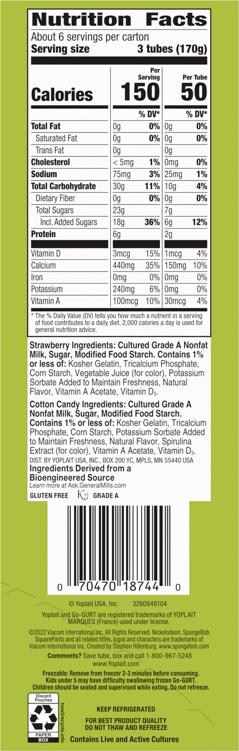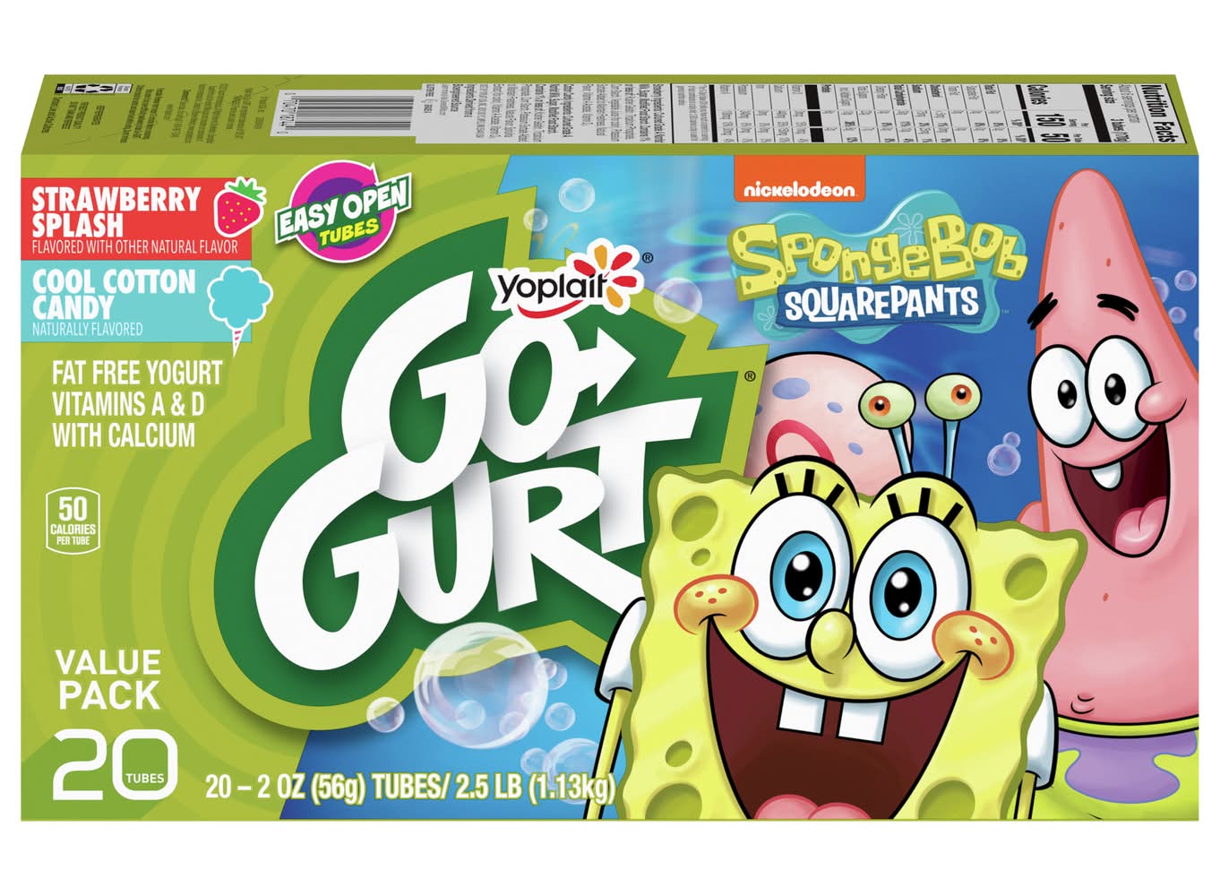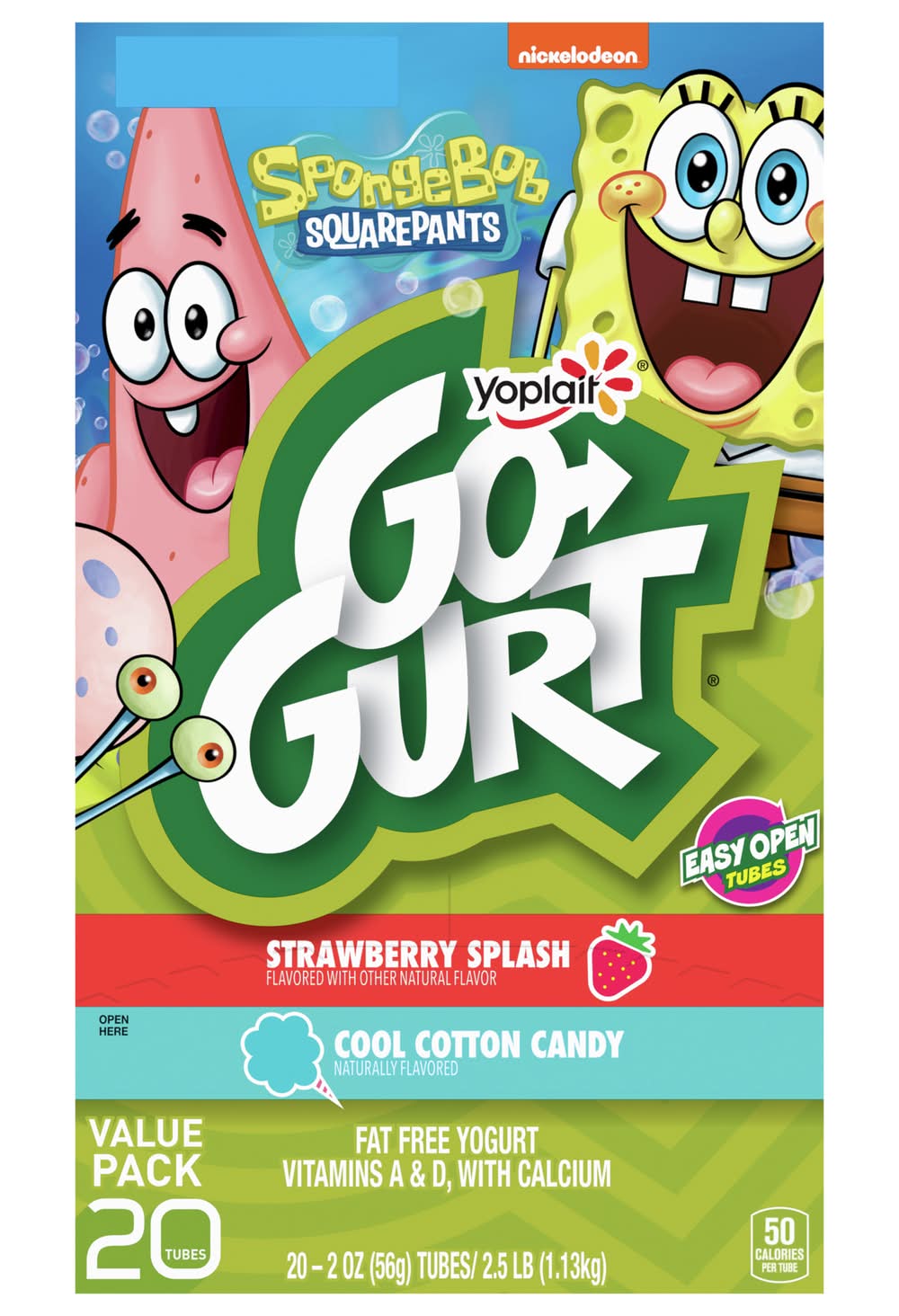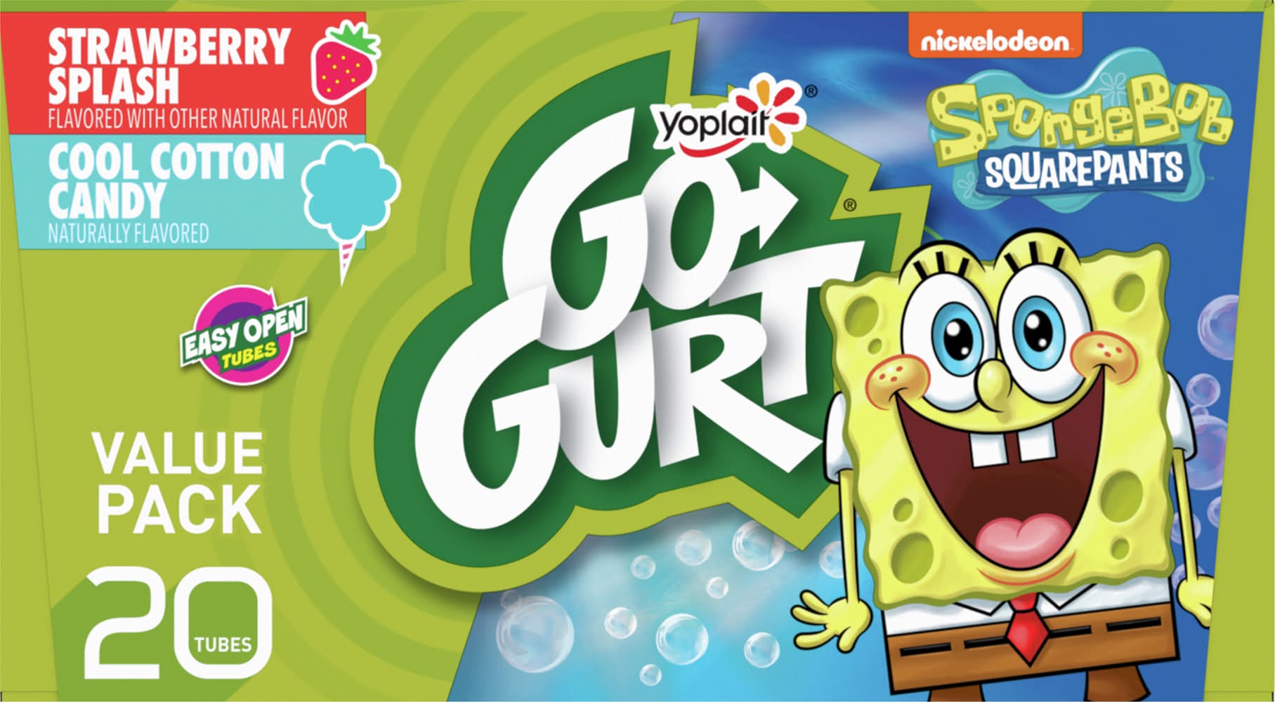 Go-Gurt Spongebob Squarepants Yogurt Tubes, Strawberry-Cotton Candy (20 x 2 oz)