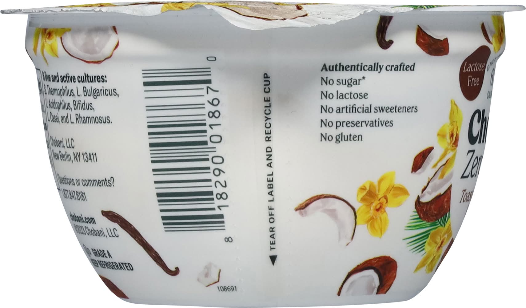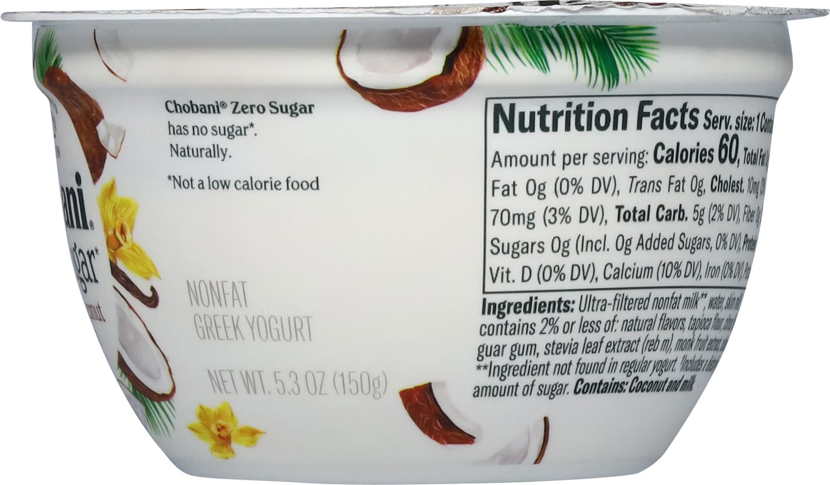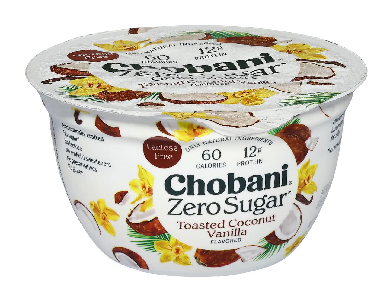 Chobani Zero Sugar Non Fat Greek Yogurt, Toasted Coconut Vanilla (5.3 oz)