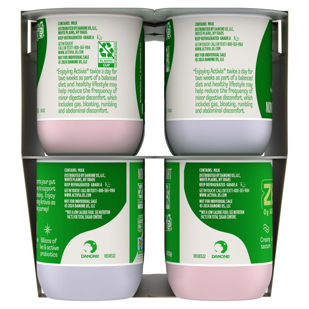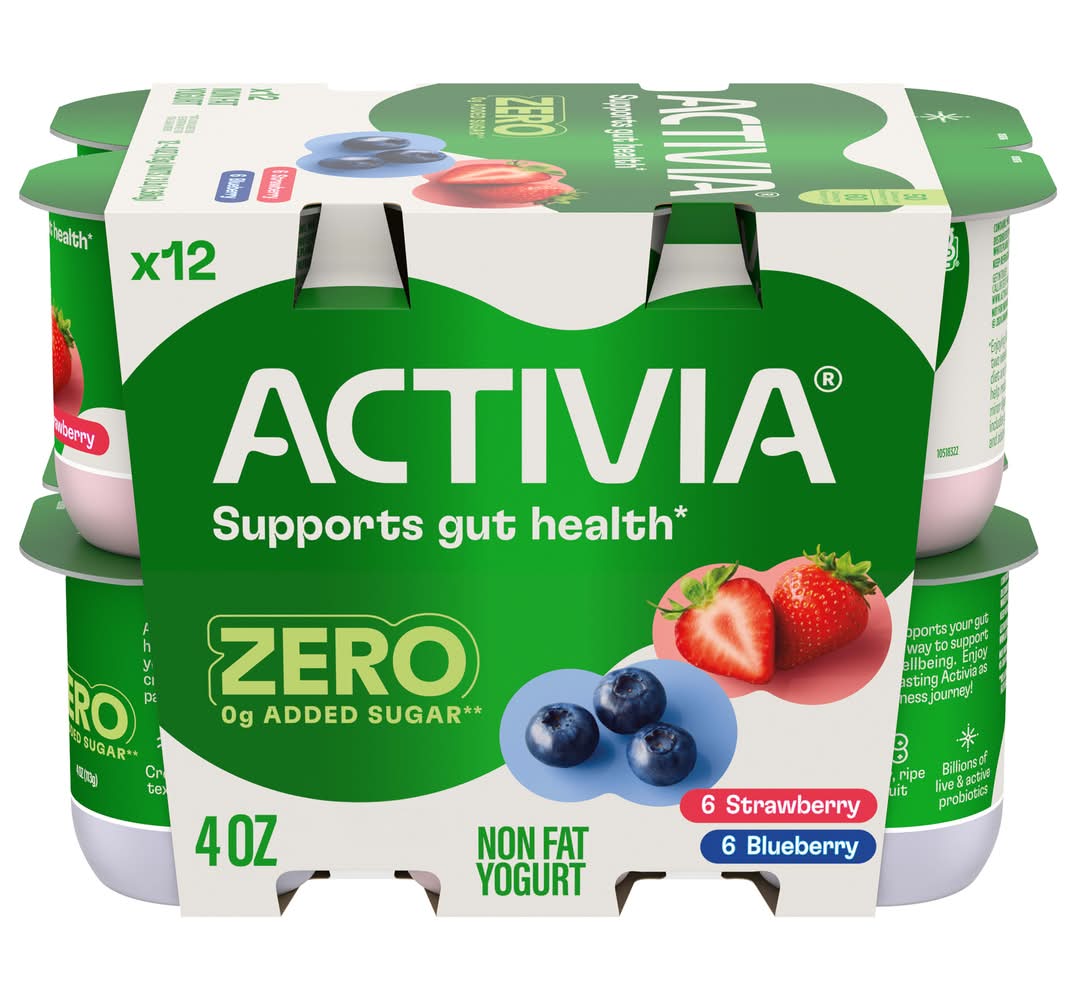 Start your day with your gut health in mind with ZERO Added Sugar Probiotic Nonfat Yogurt. Backed by 20 years of gut health research, this delicious, creamy strawberry and blueberry yogurt contains billions of probiotics and 0 grams of added sugar for a smart addition to your gut health routine. Probiotics are living microorganisms that provide specific health benefits, including supporting gut health. Each cup has 0 grams of fat and has 60 calories and each strawberry cup has 50 calories per serving. These probiotic yogurt cups are a good source of calcium. • Flavor: Strawberry-blueberry • Pack size: 12 • The Dannon Company, Inc., White Plains,NY,10605