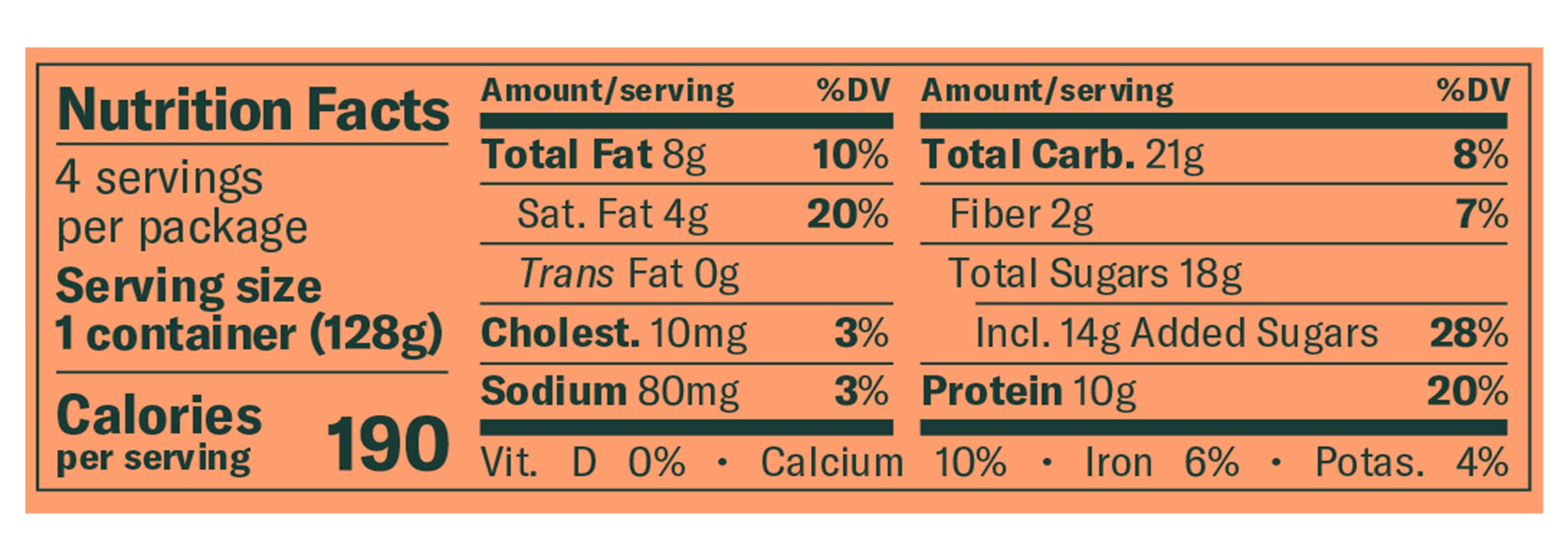 Ingredients: Cultured Lowfat Milk, Cane Sugar, Water, Almonds, Chocolate, Coconut, Tapioca Flour, Honey, Fruit Pectin, Guar Gum, Natural Flavors, Sea Salt, Cocoa, Cocoa Butter, Lemon Juice Concentrate, Vanilla Extract Contains: Milk, Almonds, Coconuts