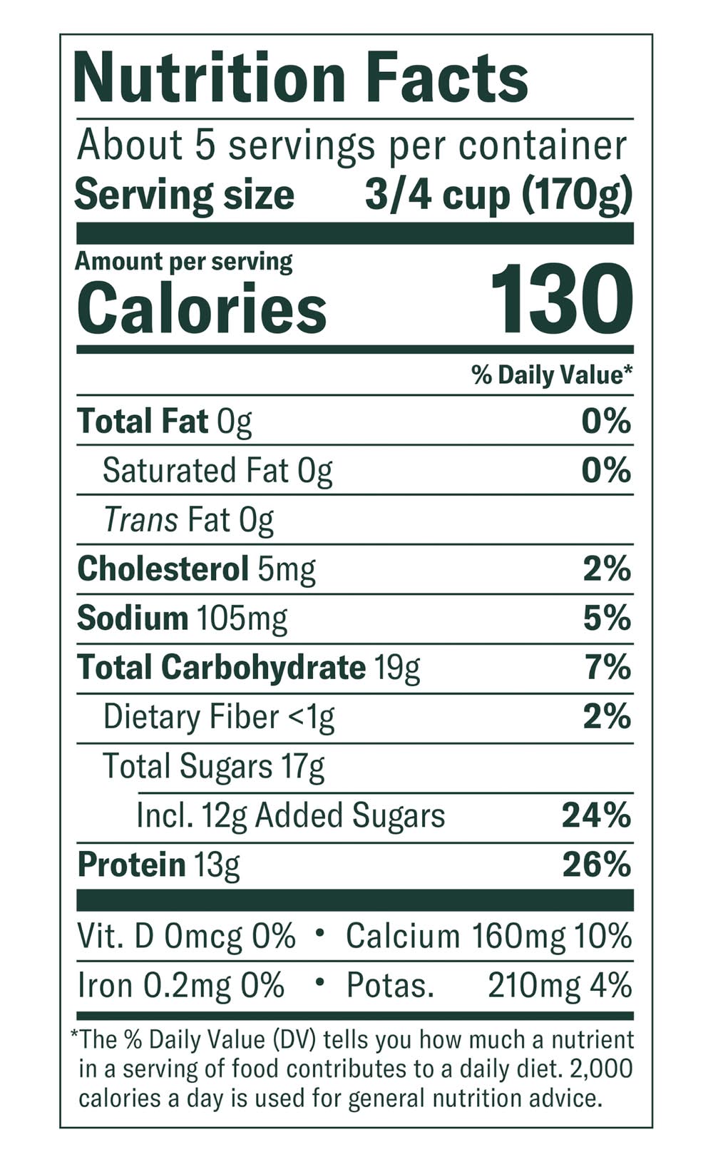 Ingredients: Cultured Nonfat Milk, Cane Sugar, Strawberries, Water, Natural Flavors, Fruit Pectin, Guar Gum, Fruit and Vegetable Juice Concentrate (for Color), Lemon juice Concentrate, Locust Bean Gum. 6 Live and Active Cultures: S. Thermophilus, L. Bulgaricus, L. Acidophilus, Bifidus, L. Casei, and L. Rhamnosus Contains: Milk