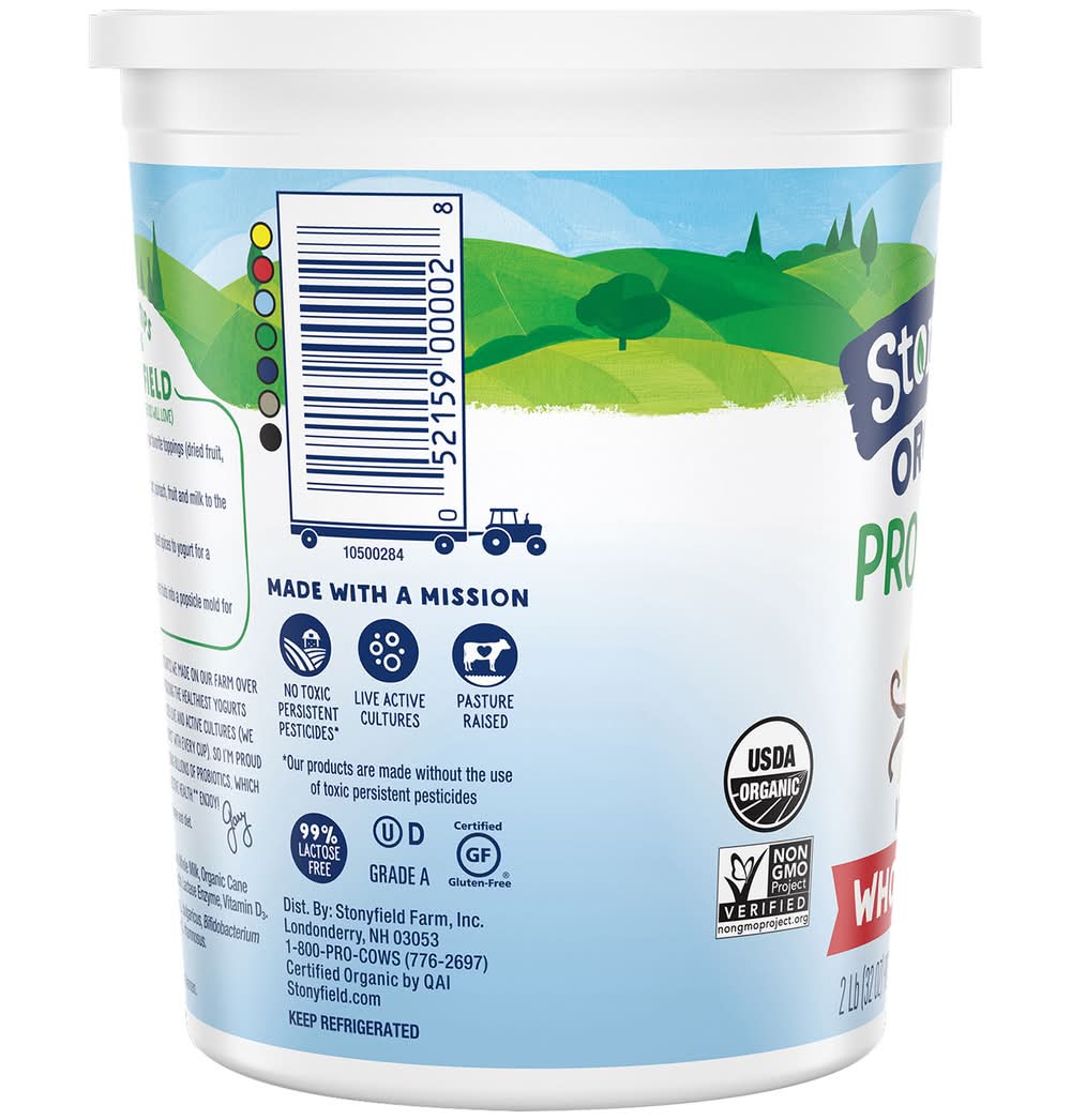 Stonyfield Organic Probiotic Whole Milk Yogurt, Vanilla (32 lbs)