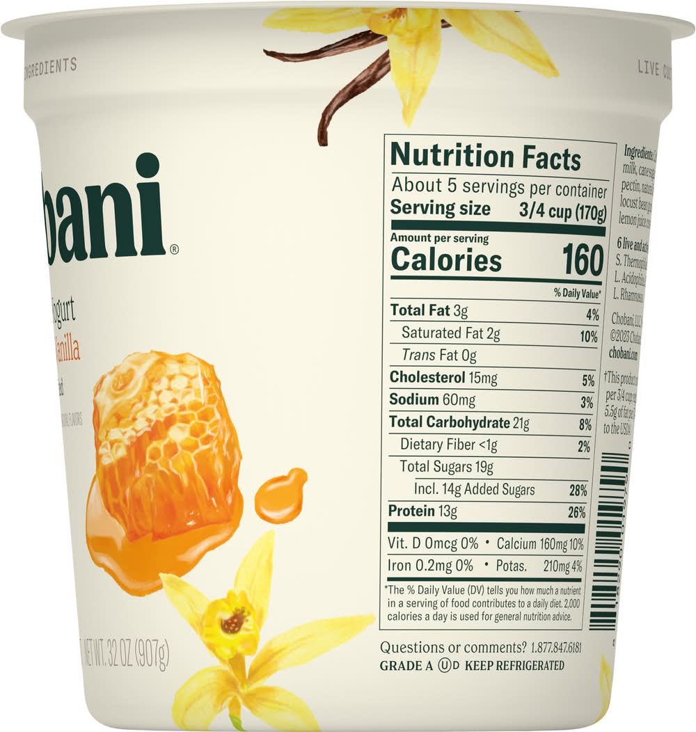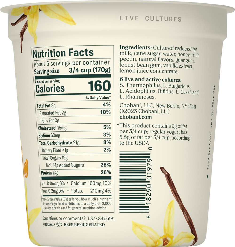 Chobani Greek Blended Reduced Fat Yogurt, Honey-Vanilla (32 oz)