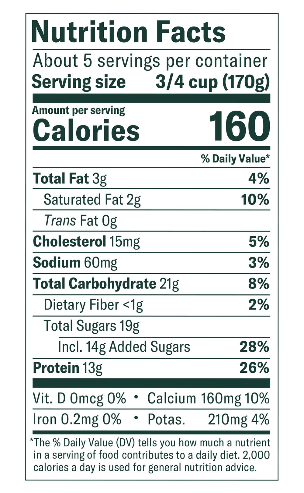 Flavored with other natural flavors. Reduced fat. 45% less fat than regular yogurt (This product contains 3 g of fat per 3/4 cup; regular yogurt has 5.5 g of fat per 3/4 cup, according to the USDA). Billions of probiotics. Live cultures. Honeybees spin nature's gold in honeycomb kingdoms. Vanilla flowers become vanilla beans, enfolding a magic within. Inspired flavors from nature's generosity - giver of great gifts. Together as if nature intended it. Only natural ingredients. Authentically crafted. No artificial flavors. No artificial sweeteners. No preservatives. No gluten. No rBST (Milk from rBST-treated cows is not significantly different). Grade A. Tear off label and recycle cup • Flavor: Honey-vanilla • Packaging: Reusable