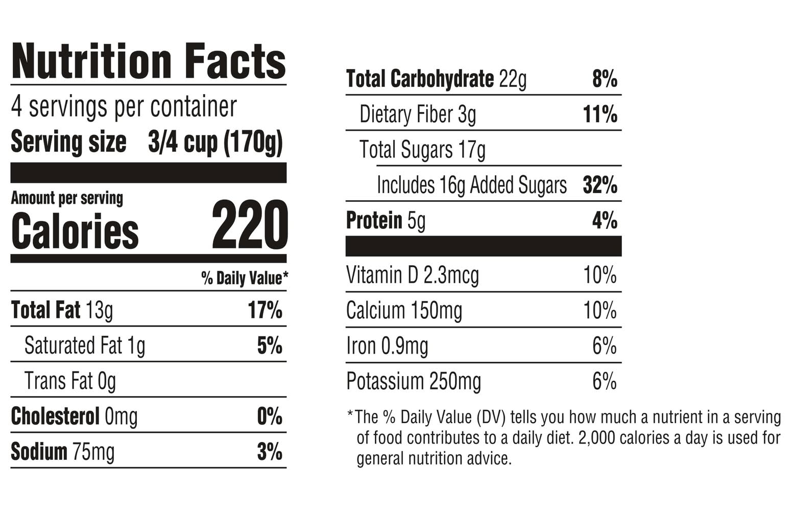 Ingredients: ALMONDMILK (WATER, ALMONDS), CANE SUGAR, WATER, PECTIN, NATURAL FLAVORS, CALCIUM CITRATE, CALCIUM PHOSPHATE, CITRIC ACID, VANILLA BEAN SPECKS, LIVE AND ACTIVE CULTURES, VITAMIN D2. Contains: CONTAINS ALMOND.
