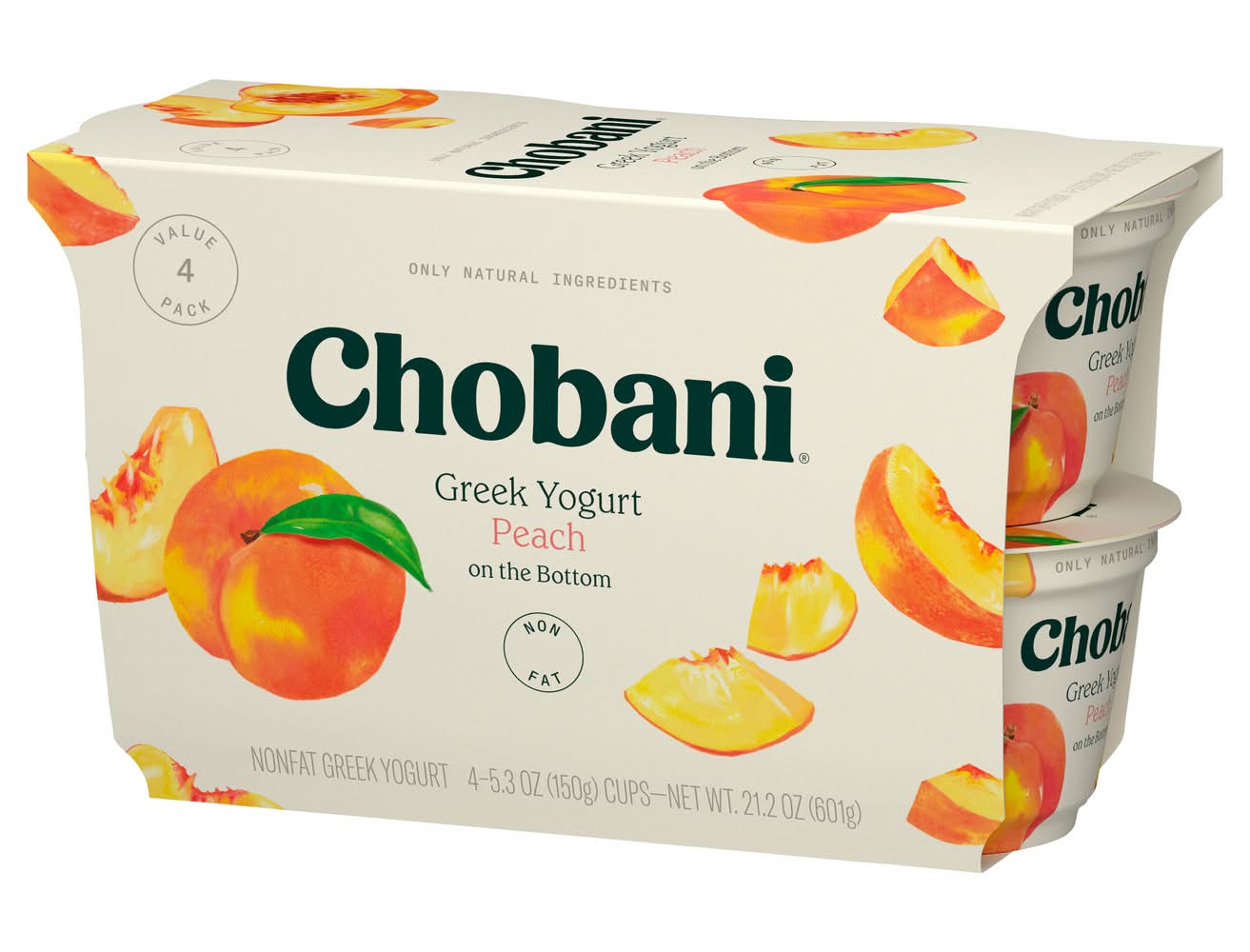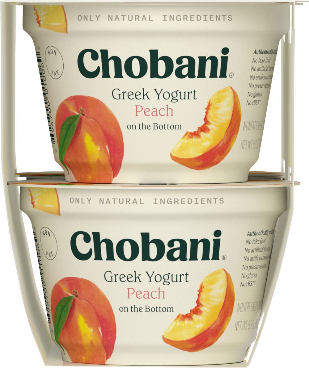 Chobani Nonfat Greek Yogurt, Peach (4 x 5.3 oz)
