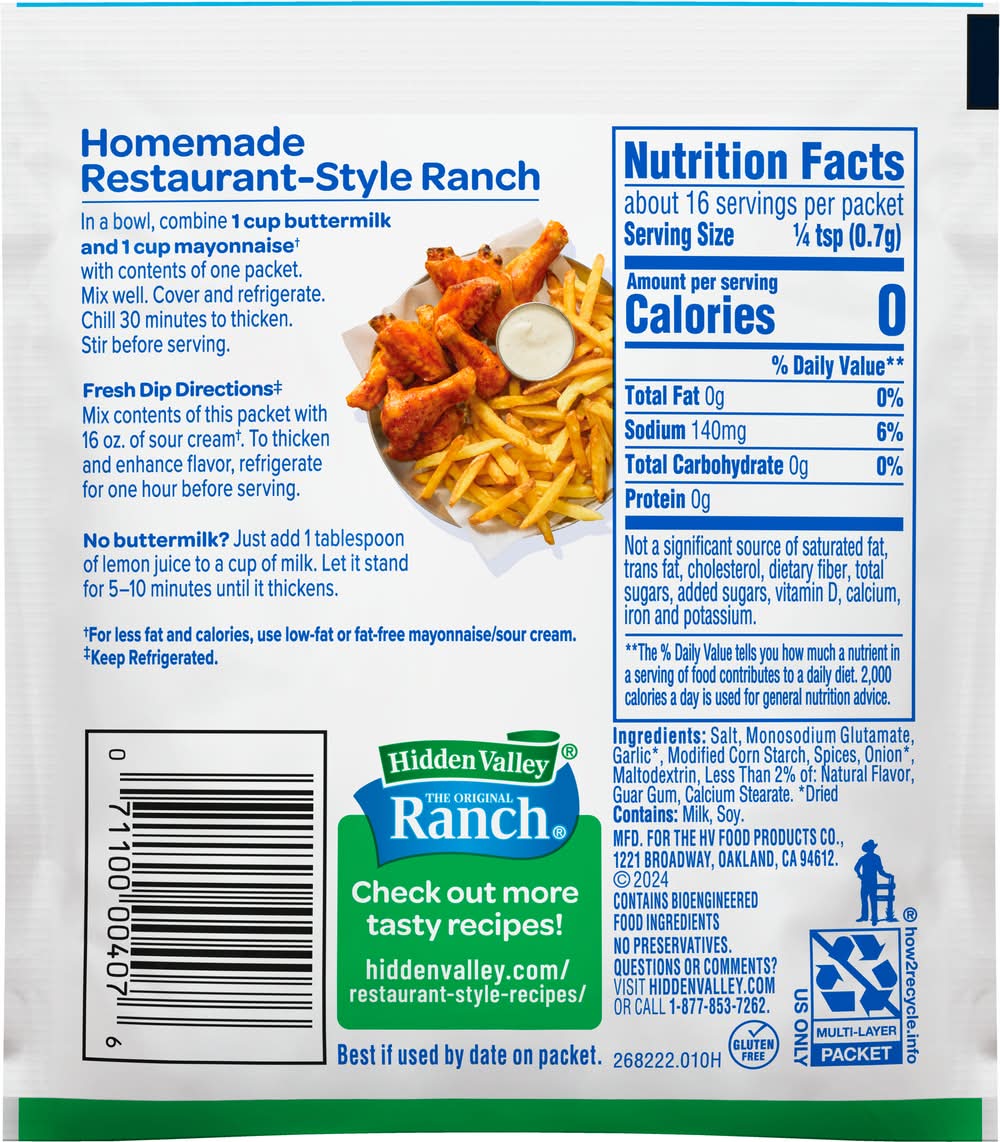Dry Hidden Valley Salad Dressing Buttermilk Ranch 0.4oz The Hv Food Products Co., 1221 Broadway,Oakland,CA,94612