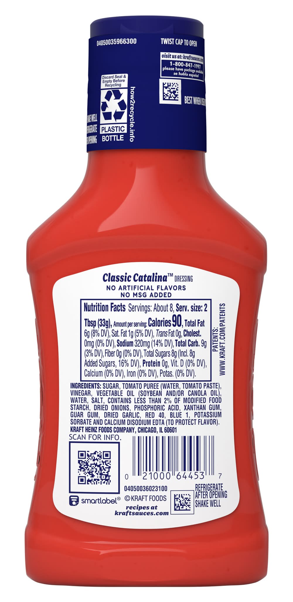 Kraft Classic Catalina Dressing adds tangy, zesty flavor to almost anything. Bursting with tomato puree, vinegar and spices, our family favorite Catalina dressing delivers mouthwatering flavor in every bite. Pre-mixed for convenience, our dressing is ready to enjoy after a quick shake. Our delicious Catalina dressing is made with no high-fructose corn syrup, no added MSG and 90 calories per serving. Try our dressing on salads and sandwiches or as a dipping sauce or marinade for chicken and veggies. Catalina taco salad is a flavorful dinner option, or try making pasta salad with Catalina dressing for a refreshing side dish. Each 8 fluid ounce squeezable dressing bottle comes with a convenient applicator top so you can add the perfect amount to all your favorite dishes.
