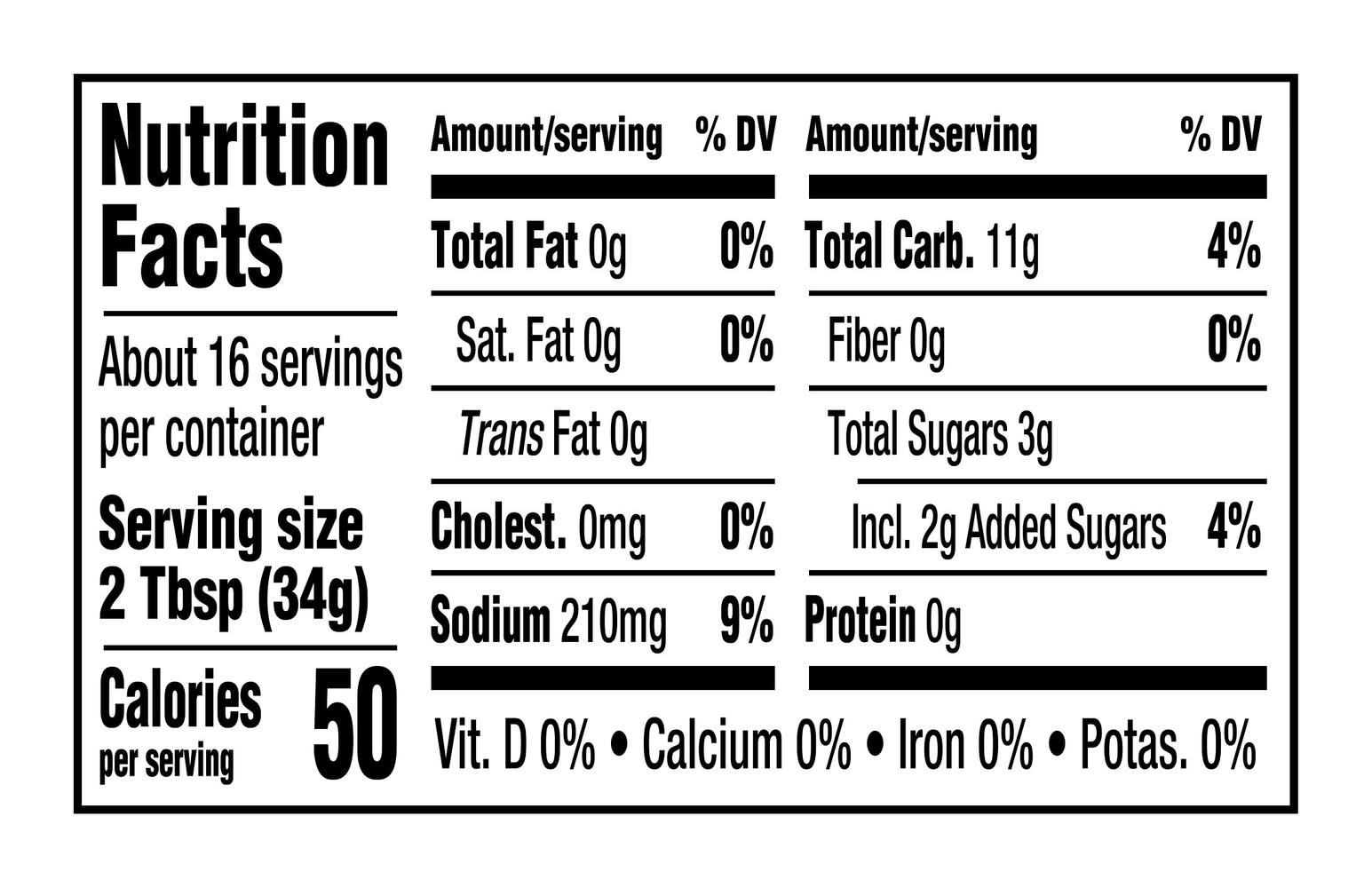 Ingredients: WATER, CORN SYRUP, VINEGAR, SUGAR, WHEY (FROM MILK), MODIFIED FOOD STARCH, CONTAINS LESS THAN 2% OF SALT, SOYBEAN OIL*, DRIED GARLIC, XANTHAN GUM, POTASSIUM SORBATE AND CALCIUM DISODIUM EDTA (TO PROTECT FLAVOR), ARTIFICIAL COLOR, PHOSPHORIC ACID, PROPYLENE GLYCOL ALGINATE, DRIED ONION, SPICES, CARAMEL COLOR. *ADDS A TRIVIAL AMOUNT OF FAT Contains: CONTAINS: MILK.