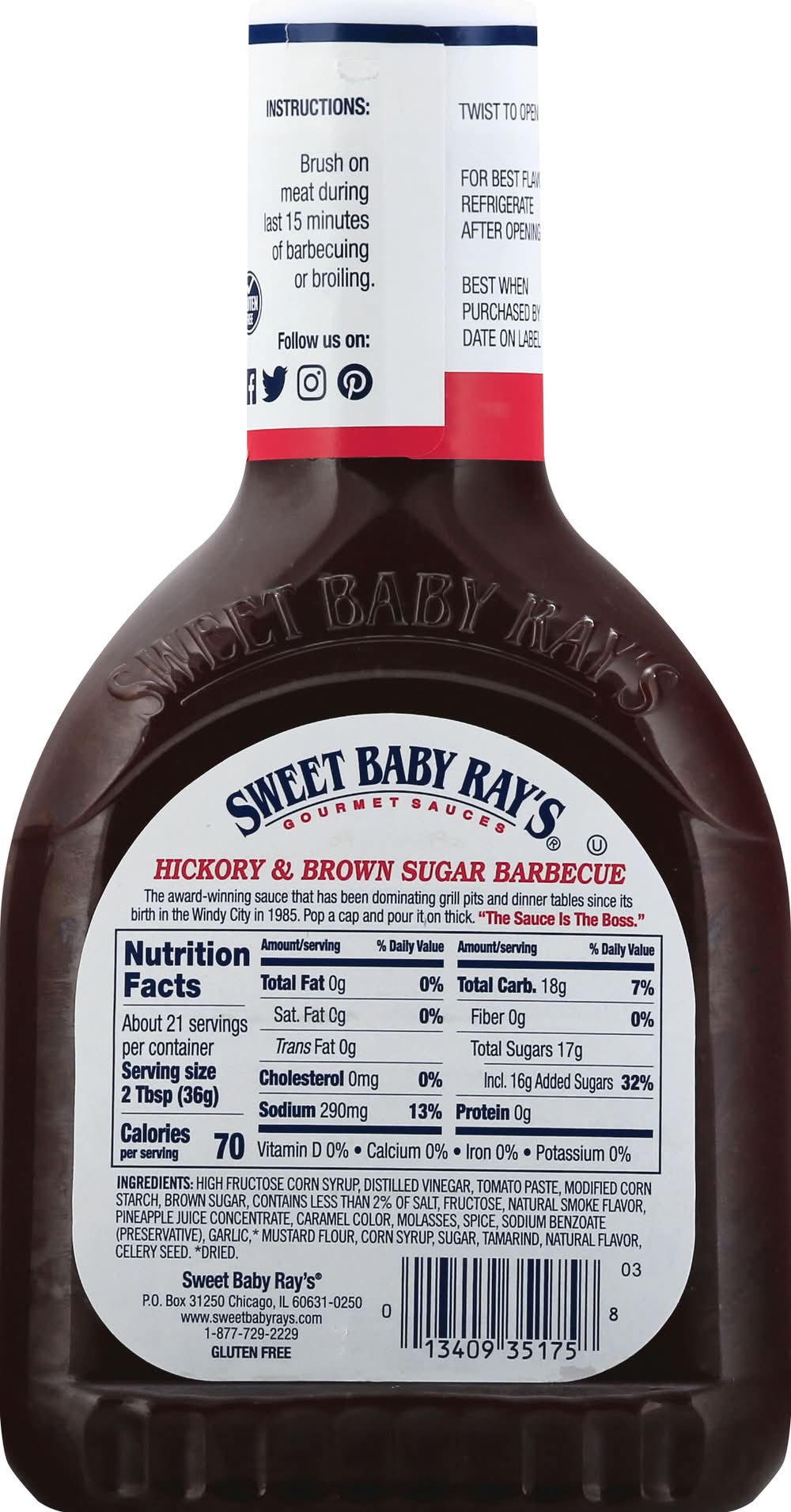 Barbecue Sauce, Hickory & Brown Sugar • Sweet Baby Ray's, PO Box 31250, Chicago, IL, 60631-0250 • Packaging: Reusable