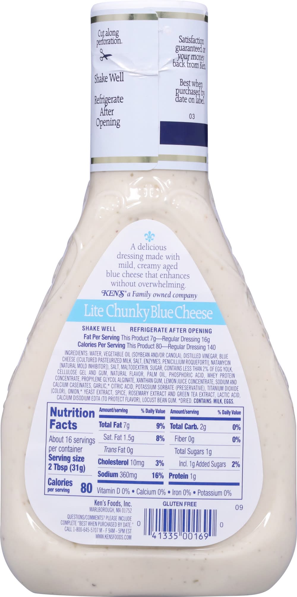 Lite Chunky Blue Cheese Dressing • Ken's Foods, Inc., Marlborough,MA,01752 • Packaging: Reusable