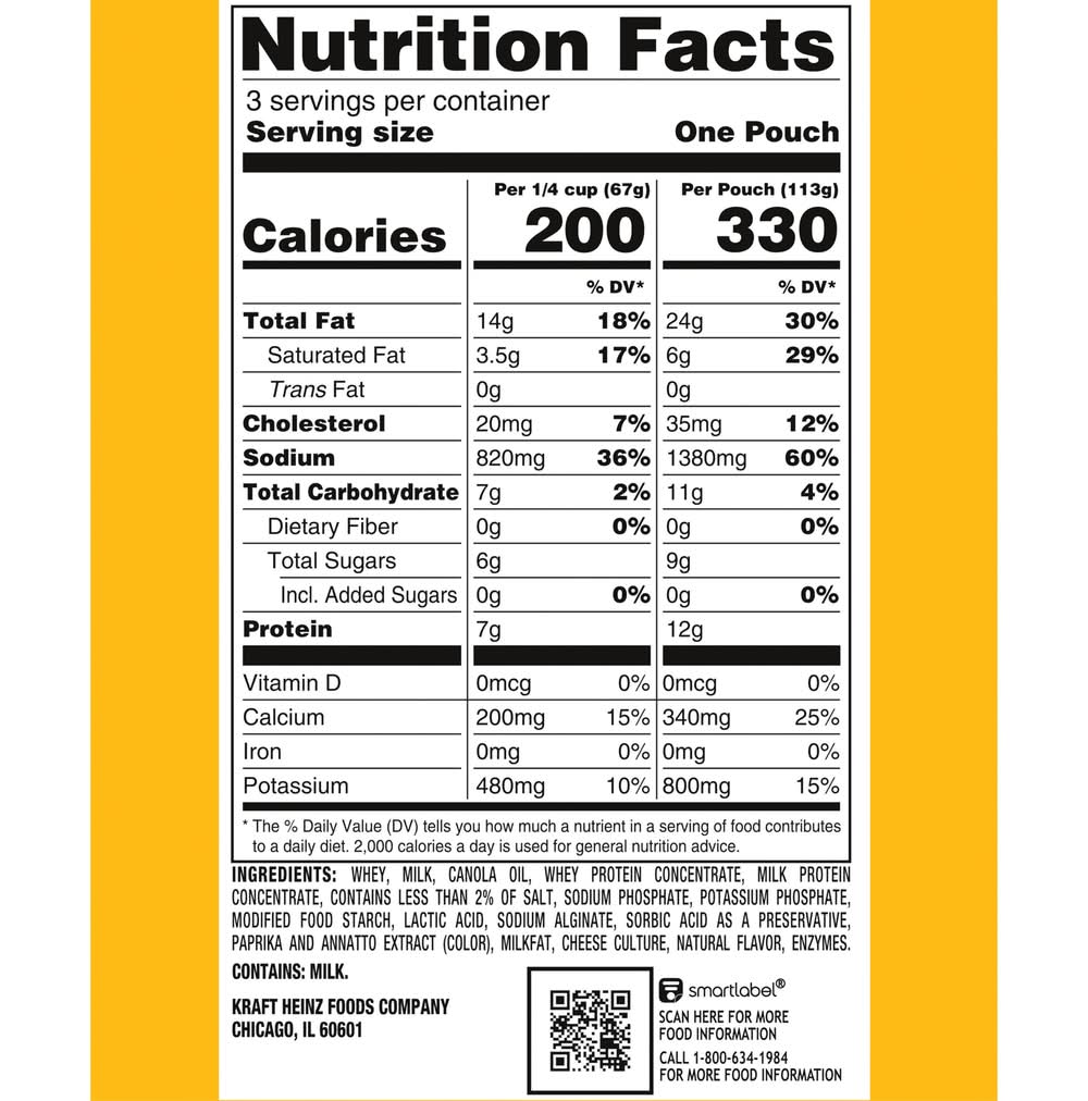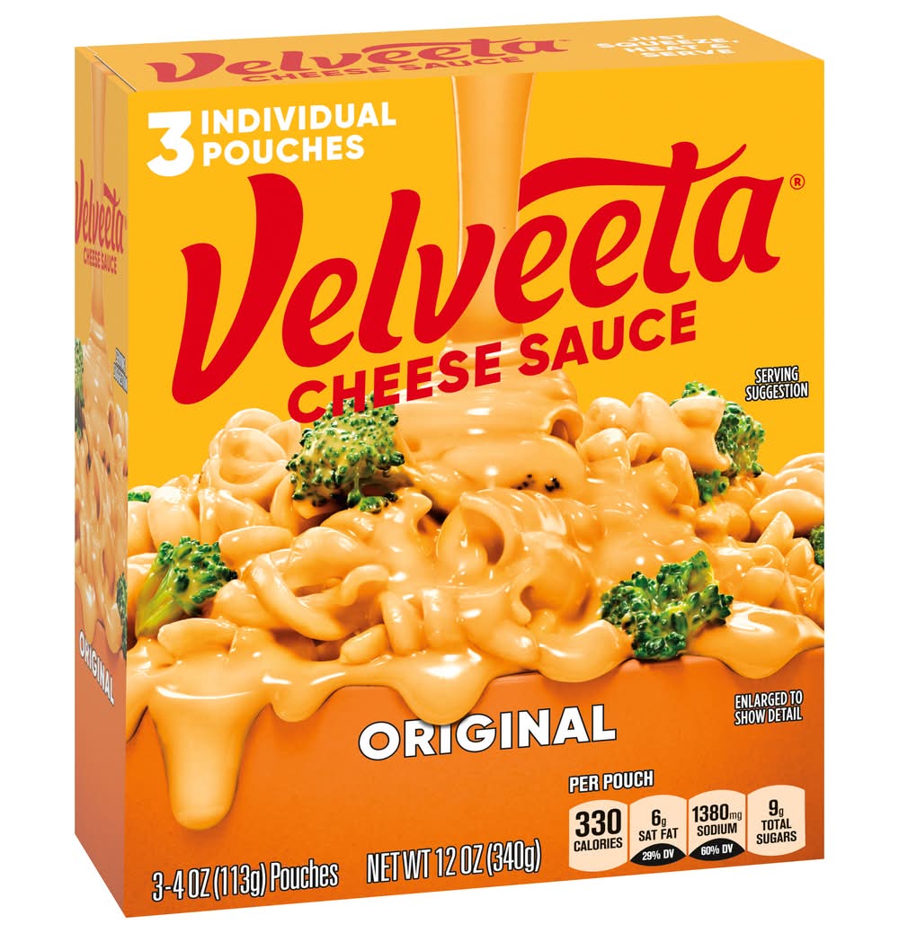 Viva la cheese! Live life to the creamiest with Velveeta Original Cheese Sauce Pouch. Craveable and flavorful, our cheese sauce contains real milk. When your drip is as smooth as ours, you don’t waste time when it comes to delicious, melty indulgence. For instant cheesy gratification, make your most enviable cheese dip or macaroni and cheese recipe, start a perfectly cheesy soup base, indulge in creamy pasta sauce, drizzle over nachos or add Velveeta to any side dish, entree or snack worth elevating to icon status. Velveeta’s supremely creamy texture, epic meltability and rich, savory taste satisfy your cravings any day of the week. Sometimes unnecessary is necessary, so kick back, relax and embrace the flavor, unapologetically. Each 12 oz box contains three 4 oz pouches. Refrigerate our cheese sauce after opening to maintain freshness. That’s La Dolce Velveeta! • Number of servings: 3 • Kraft Heinz Foods Company, Chicago, IL, 60601 • Packaging: Reusable