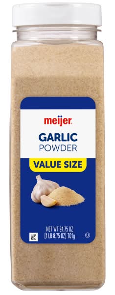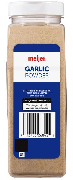 Bring the rich flavors of your next recipe to life with a few shakes of Meijer Garlic Powder! This tasty seasoning is made from dehydrated garlic, which adds a bold kick of flavor to pasta, grilled chicken and even pizza. Meier Distribution, Inc., Grand Rapids, Mi 49544