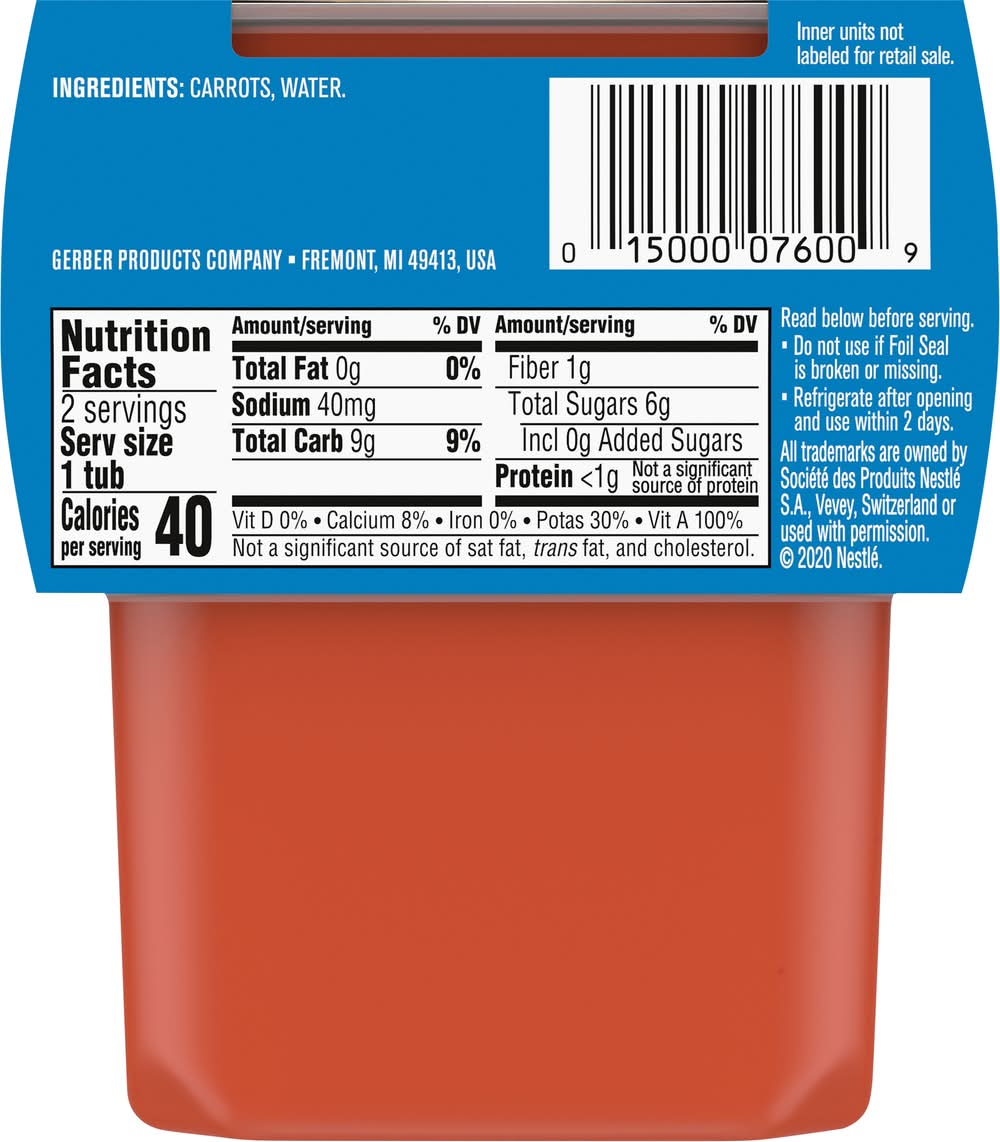 Carrot, Sitter 2nd Foods, 2 Pack Gerber Products Company, Fremont, MI 49413 USA