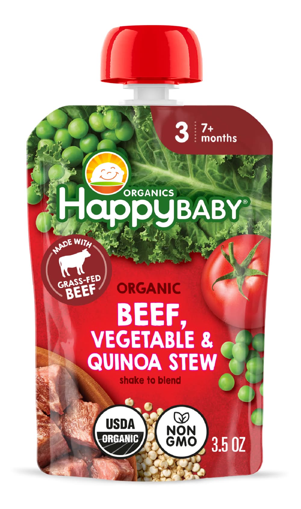 Is your little one ready to explore big flavors? Happy Baby Savory Blends Stage 3 pouches feature recipes adapted from familiar roasted or sautéed dishes you might cook at home – this puree combines organic grass-fed beef, market vegetables and quinoa, with flavorful oils and herbs. It’s a bold (and unsalted!) blend that delivers one full serving of vegetables. Support baby’s developing stage 3 taste buds while including important nutrients like protein and iron in their diet. All Happy Baby products are always certified USDA organic, made with ingredients that are non-GMO and grown without the use of toxic persistent pesticides, in packaging made without BPA, BPS, or phthalates. Flavor: Assorted