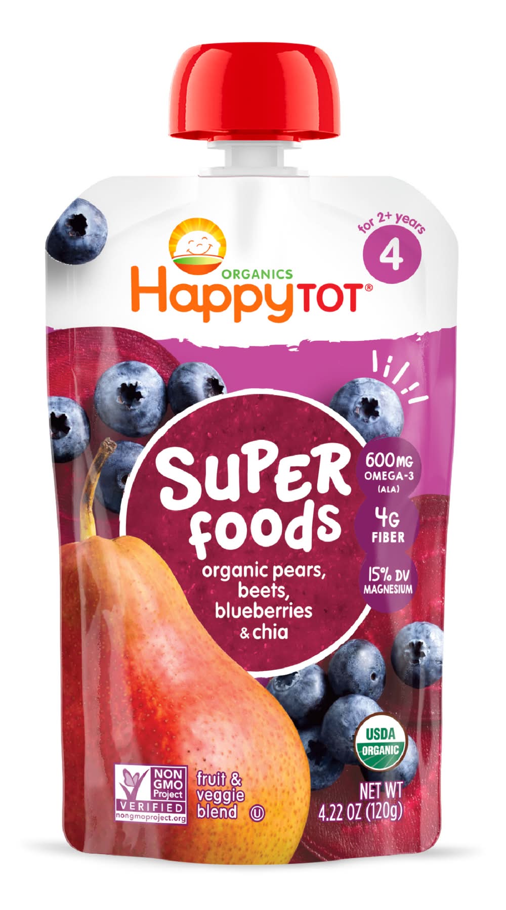 Happy Baby Organics Super Foods Pears Beets & Blueberries With Chia Fruit & Veggie Blend Toddler (4.22 oz)