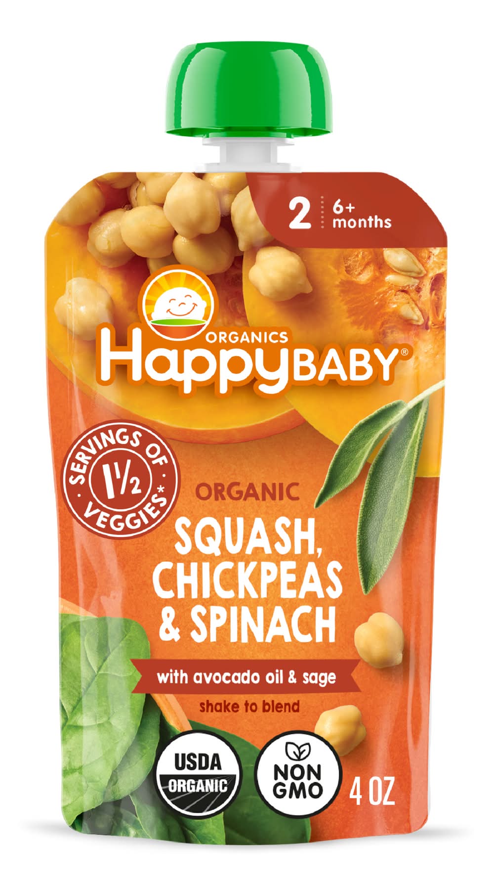 Happy Baby Organics 2 (6+ months) Squash Chickpeas & Spinach (4 oz)