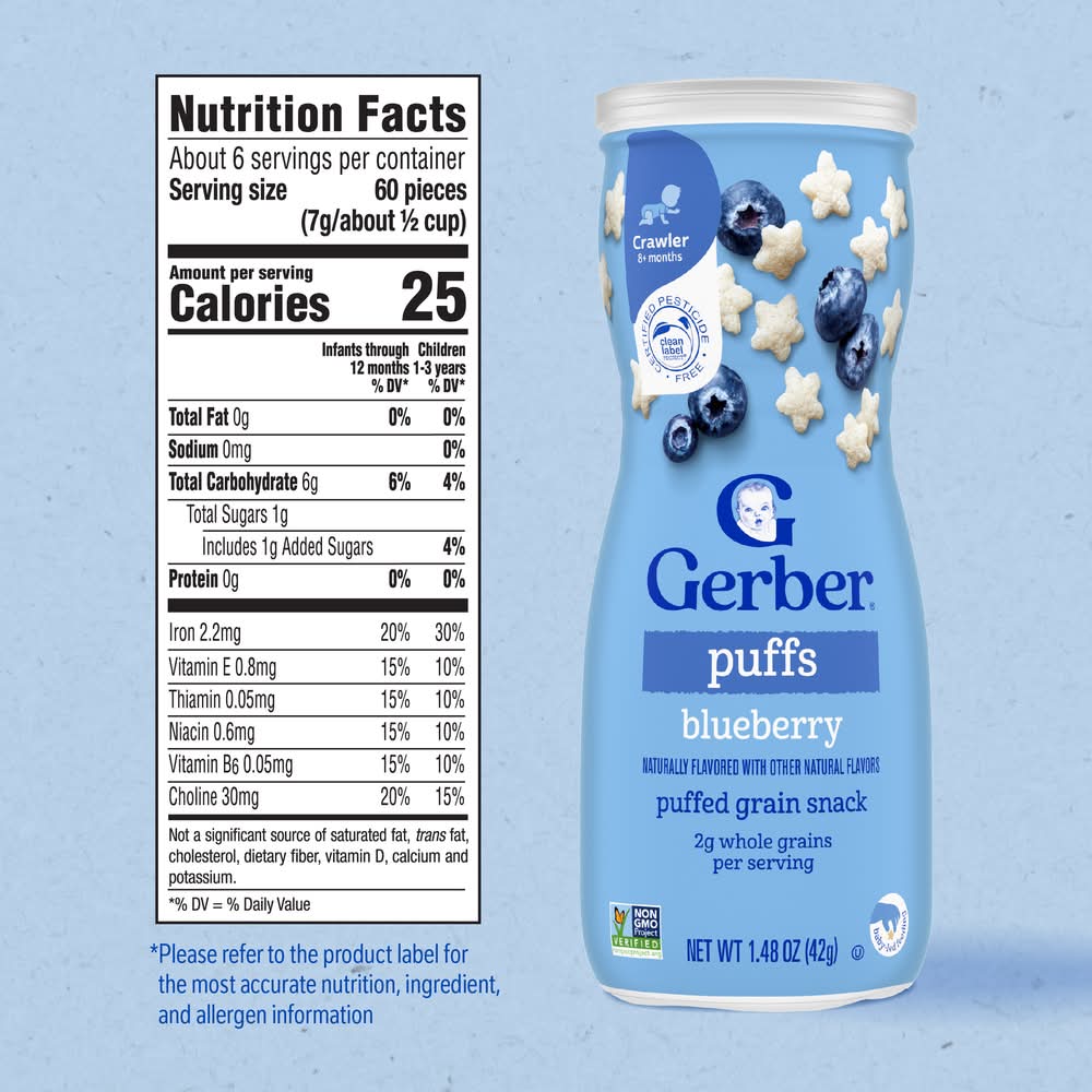 Gerber Puff Grain Baby Snacks, Blueberry, 8+ Months (1.48 oz)
