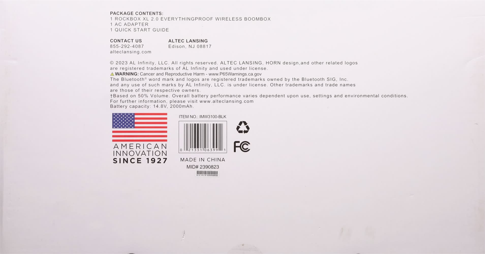 Altec Lansing Rockbox Xl 2.0 Waterproof Bluetooth Wireless Speaker, Black
