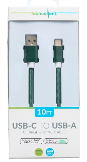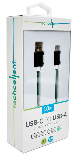 Techcellent Usb-A To Usb-C Charge & Sync Braided Cable, 10', Green