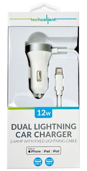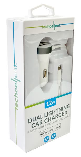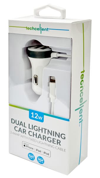 Techcellent 12W Fixed Lightning Cable Car Charger, White