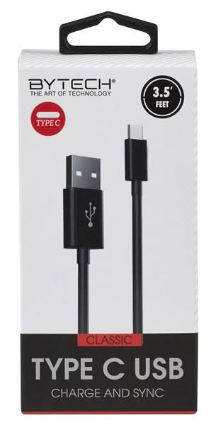Bytech Classic Type-C Charge and Sync Cable, 3.5', Black