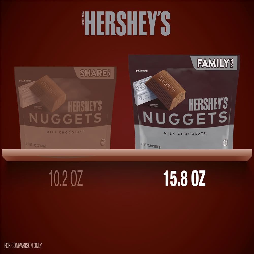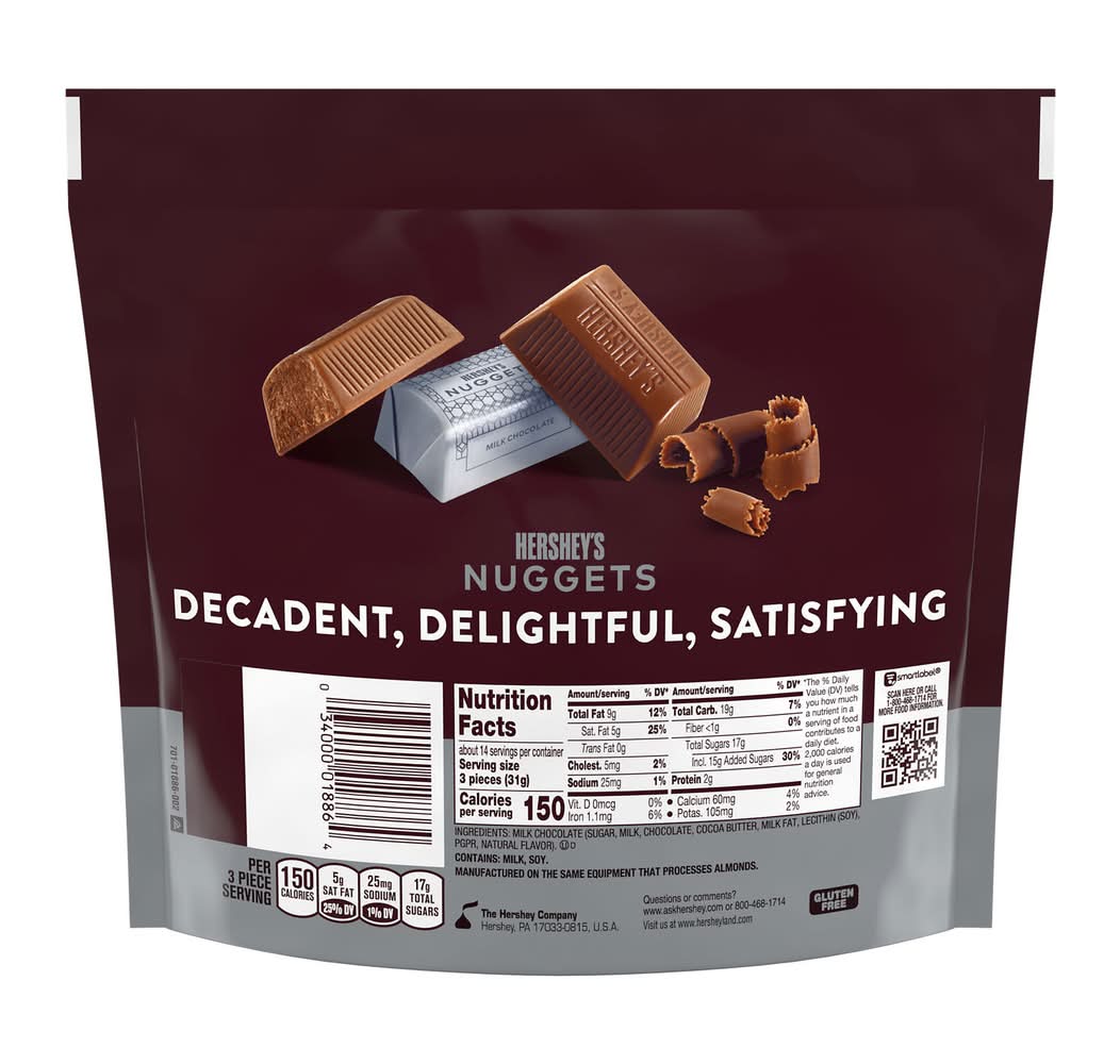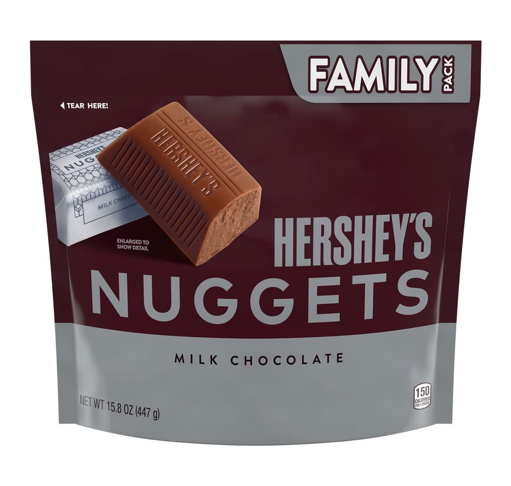 The HERSHEY'S NUGGETS milk chocolate candy family pack is filled with delicious chocolate treats any milk chocolate lover will adore. Each two-bite candy offers creamy, delightful milk chocolate individually wrapped in stunning silver foil. Dress up your kitchen table with a bowl of HERSHEY'S NUGGETS goodies, surprise your co-workers with a filled candy dish or drop a handful of these treats into a party bag for an instant, anytime gift. HERSHEY'S NUGGETS candies are a crowd-pleasing treat to share during game nights and movie marathons — attendees will swear they've never seen a better snack selection. No matter where you find yourself this year and who ends up there with you, keep some milk chocolate candies around to liven up parties, networking events, work meetings, family gatherings and snack times galore — you can thank us when you're done munching! Add them to your holiday festivities, too! Stuff Christmas stockings, fill Easter baskets, stock Halloween candy bowls and trick or treat bags and create Valentine's Day gift bags with sweet treats for everyone on your list. Make each holiday and all of the ordinary moments in between a little more special with delicious HERSHEY'S NUGGETS milk chocolate candies to share and enjoy.