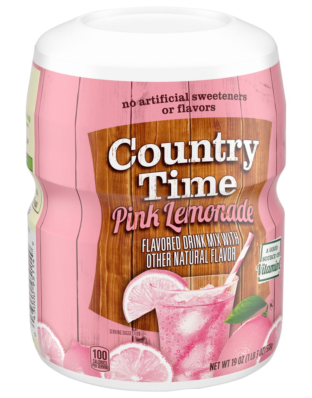 Combine Country Time Naturally Flavored Pink Lemonade Powdered Drink Mix with water and enjoy the old-fashioned refreshment of pink lemonade. Made with real sugar and no artificial flavors or sweeteners, It is the perfect water enhancer to keep you cool all year. Our comes in a resealable canister and has an easy-measure lid for simple preparation. so there is enough drink mix for the whole family to enjoy! To prepare, simply pour our mix into a plastic or glass pitcher, add water and ice, stir and serve. Flavor: Pink lemonade