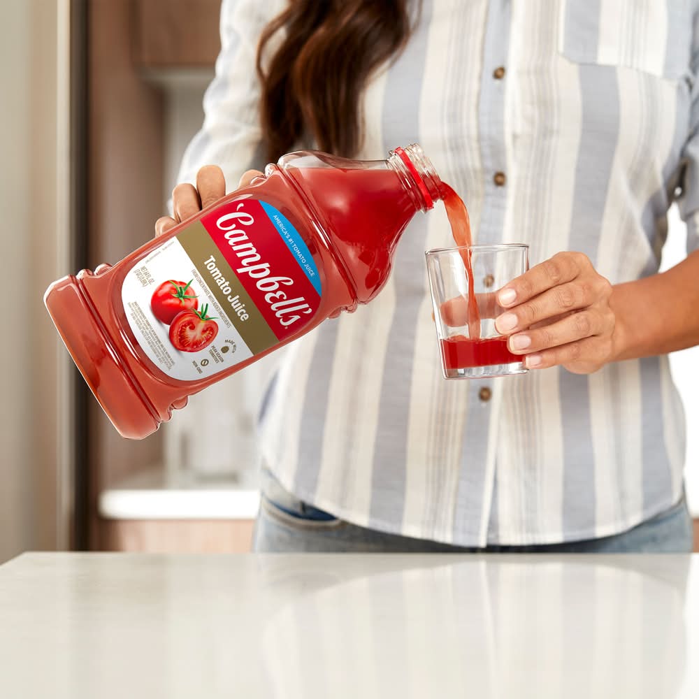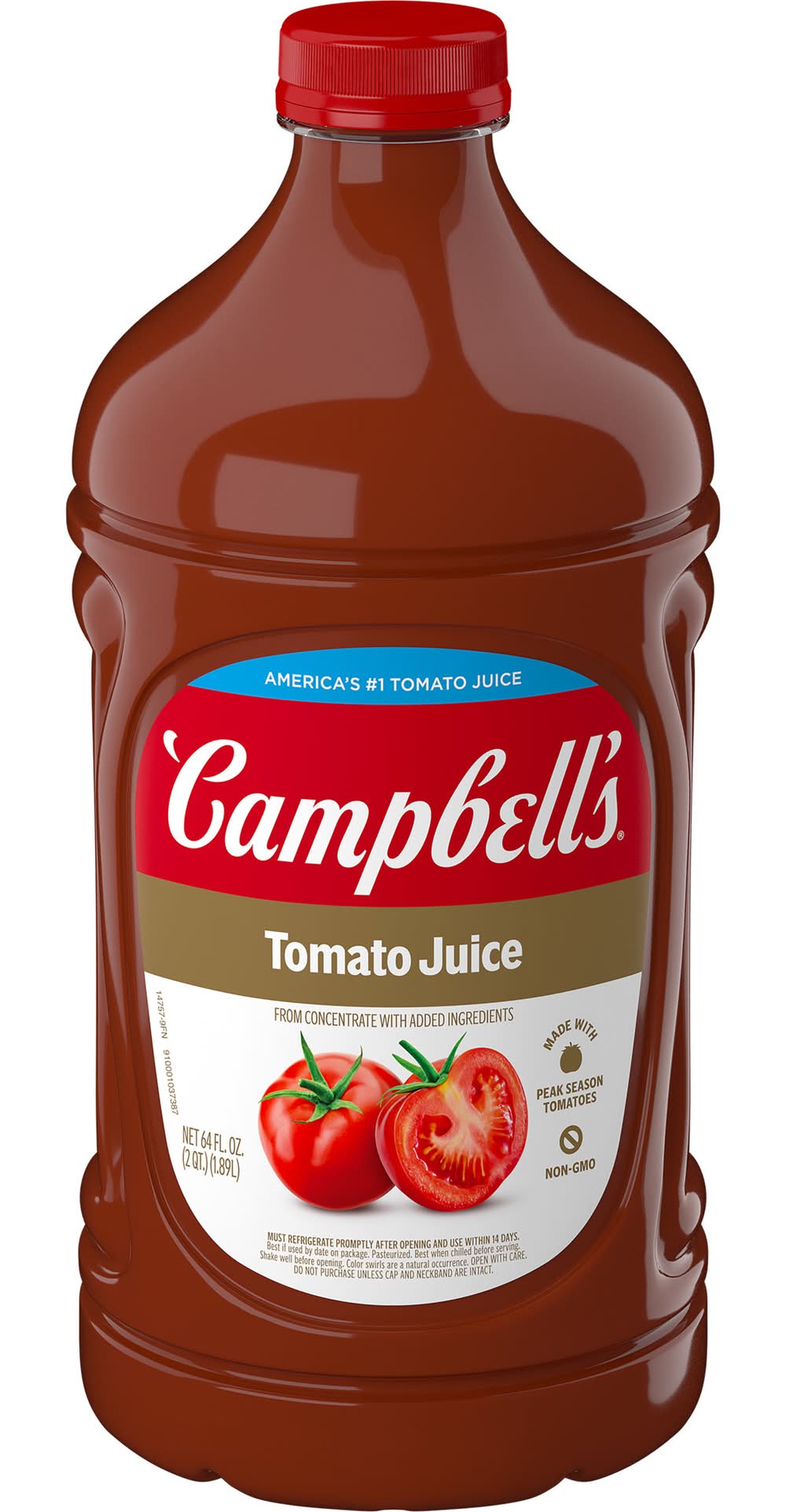 Campbell's 100% Tomato Juice is the rich, delicious vegetable juice that brings the sun-ripened taste of peak-season tomatoes to every sip. Made with tomatoes picked at their best and no added sugars, no artificial flavors, and no high fructose corn syrup, this non-GMO juice is packed with tomato juice goodness. Every glass is an excellent source of vitamin C, making it a satisfying and refreshing choice you can feel good about. Perfectly pure and full of flavor, it's America's #1 tomato juice for a reason. Start your day with a glass of Campbell's Tomato Juice alongside your breakfast or enjoy it as a quick, satisfying afternoon pick-me-up. Hosting friends and family? It's the perfect base for mocktails and cocktail mixers—try it in a classic Bloody Mary or create your own signature drink! No matter how you use it, this versatile vegetable juice is a pantry staple that fits into every part of your day. Campbell's 100% Tomato Juice is gluten-free, vegetarian, and made with care, using only the best ingredients. It's more than just veggie juice—it's satisfying flavor that's there for you whenever you need it. From breakfast to happy hour, every sip is a reminder of the simple joy that comes from quality ingredients. Pour a glass and experience the timeless taste of Campbell's Tomato Juice today. • Campbell Soup Company, Camden, NJ, 08103-1701, U.S.A., 800-257-8443 • Packaging: Reusable