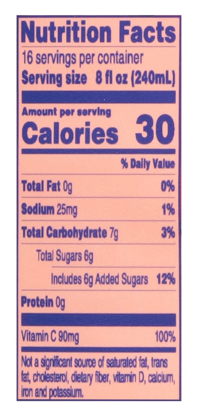 Cherry, orange, pineapple from concentrates, naturally and artificially flavored. Per 8 oz Serving: 30 calories; 6 g total sugars. 100% DV vitamin C. Irresistible. Food safe. • Flavor: Tropical punch • Tampico beverages, inc., Chicago,IL. • Packaging: Reusable