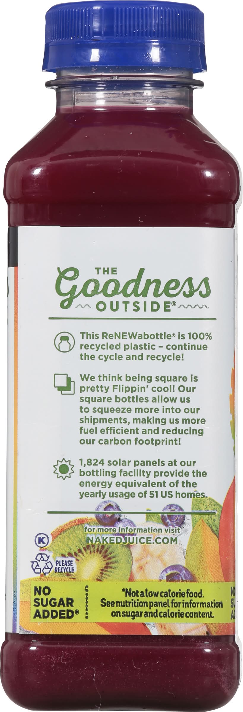 mighty good juice with nutrients packed into every square ounce, with no added sugar and no preservatives. • Naked Juice Co., Irvine,CA,92612 • Packaging: Reusable