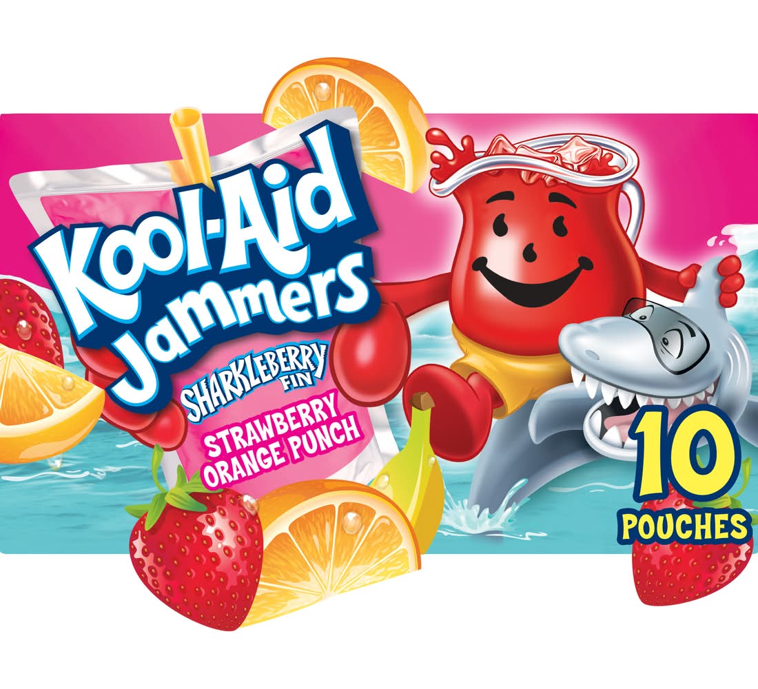 Kool-Aid Jammers Sharkleberry Fin Juice Drinks, Strawberry-Orange Punch (10 x 6 fl oz)
