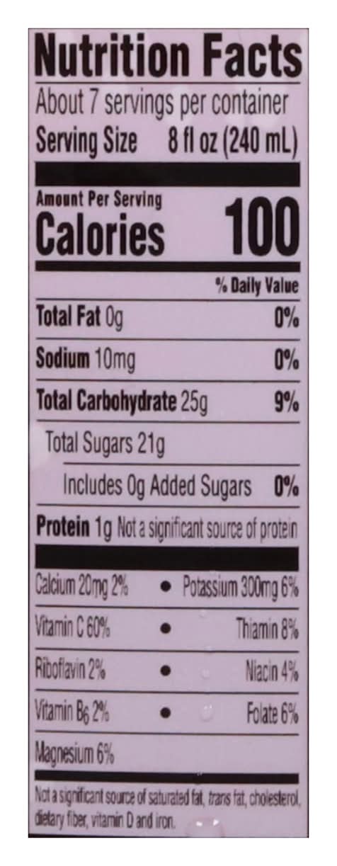 All natural. 100% pure squeezed juice. Just color varies naturally. Excellent source of vitamin C. Pasteurized. No water or preservatives added. • Flavor: Grapefruit • Packaging: Reusable