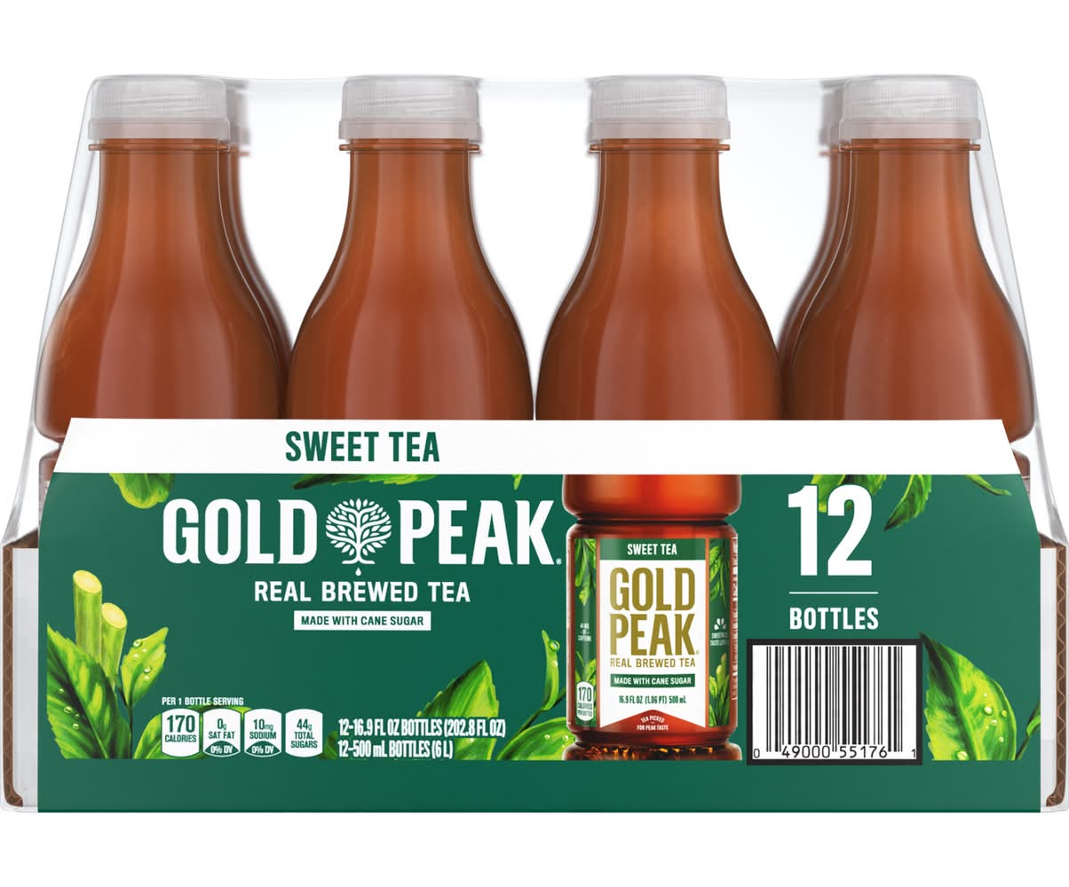 Gold Peak is real brewed tea made from tea leaves picked for peak taste - enjoy Gold Peak Sweet Tea made with real cane sugar. • Pack size: 12 • Packaging: Reusable