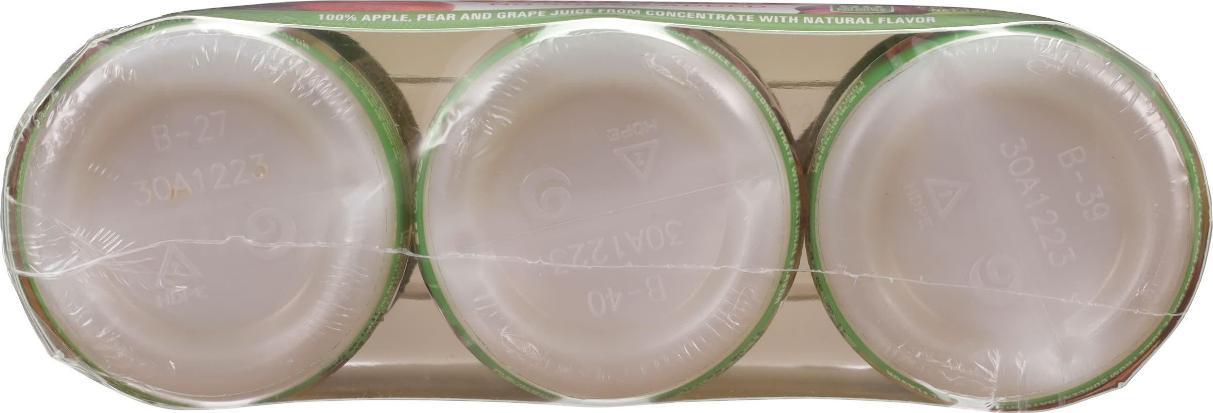 Ingredients: Water, Concentrated Apple, Pear and Grape Juices, Citric Acid, Ascorbic Acid (Vitamin C), Natural Flavor