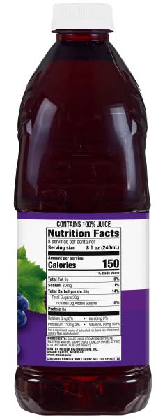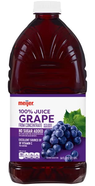 Meijer 100% Grape Juice is crafted without artificial colors and flavors. Suitable for a variety of uses, including mixed drinks or as a refreshing beverage, it provides the equivalent of a full cup of fruit in each serving. This juice offers a simple way to enjoy a tasty and nutritional drink.