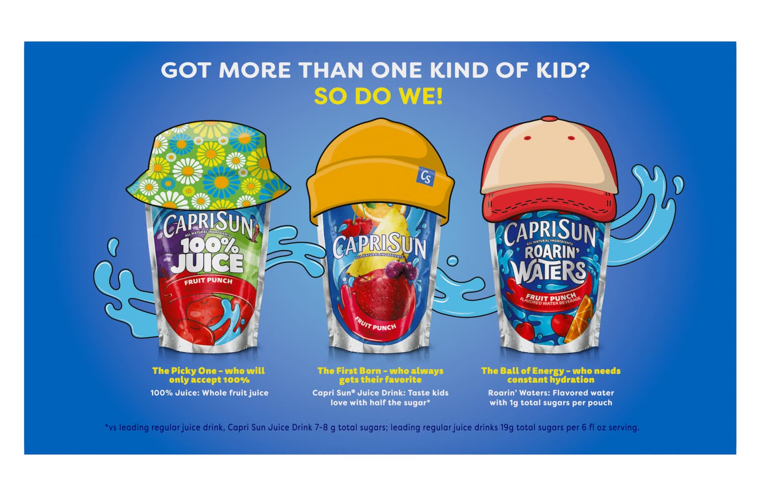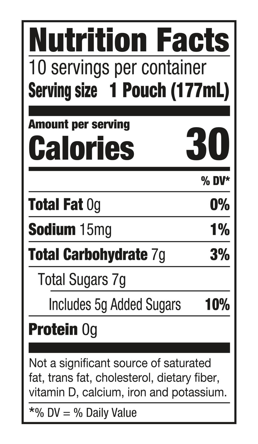 Mixed fruit flavored juice drink from concentrate. No high fructose corn syrup. 35% less sugar than leading regular juice drinks. No artificial colors, flavors, or preservatives. 50 calories per pouch. See the goodness. Clear bottom pouch! You asked. We listened. You wanted us to remove high fructose corn syrup, so we did. We've also never had any artificial colors, flavors or preservatives. See for yourself with our clear-bottom pouch. Never any artificial colors, flavors, or preservatives. Please recycle this carton. Contains 10% juice. This product 13 g sugars; leading regular juice drinks 22 g sugars per 6 fl oz serving. C • Flavor: Mountain cooler • Pack size: 10 • Packaging: Reusable