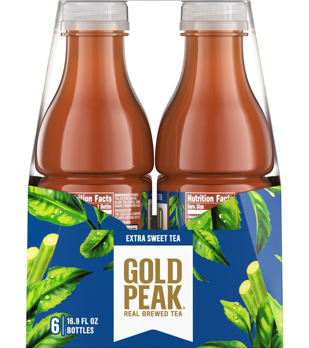 Gold Peak Extra Sweet Tea 16.9 fluid ounce (US) Non-Refillable Plastic other Bottle Other proprietary 6 Paperboard • Pack size: 6 • Packaging: Reusable