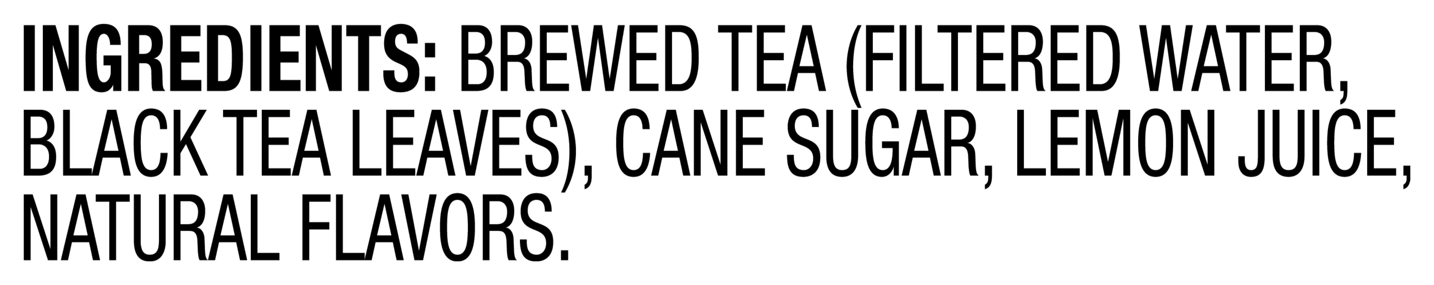 Ingredients: Brewed Tea (Filtered Water, Black Tea Leaves), Cane Sugar, Lemon Juice, Natural Flavors.