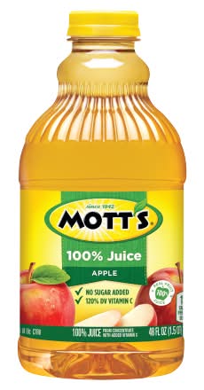 Nothing satisfies quite like Motts Original Apple Juice. Packed with ripe apple flavor, Motts Original Apple Juice is 100% fruit juice and delivers 2 servings of fruit in each 8 fl. oz cup, per current USDA Dietary Guidelines. Its also an excellent source of Vitamin C, contains no added sugar and has a delicious taste the whole family will love. Motts Original Apple Juice is the perfect refreshment at dinnertime, lunchtime, or any time. Apples have always nourished us, inspired us, and provided for us. Mott's provides the nutrition and taste of real fruit that families have trusted since 1842, when our founder - Samuel R. Mott's - began growing and packaging apples in New York. In the years since then, Motts commitment to apple excellence and high-quality products has continued to provide healthy, delicious juices and snacks. Treat your family to the classic taste of Motts Original Apple Juice.