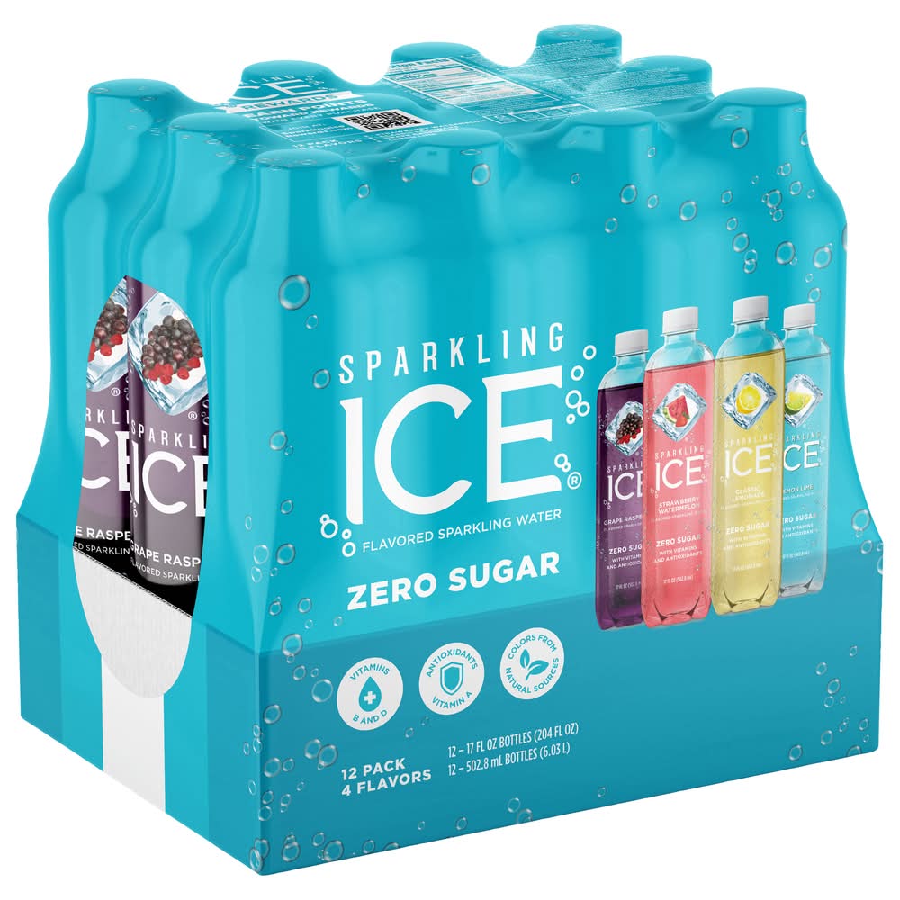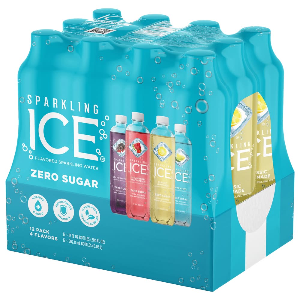 Sparkling Ice Spiked Zero Sugar Flavored Sparkling Water, Grape Raspberry-Strawberry Watermelon-Classic Lemonade-Lemon Lime (12 x 17 fl oz)
