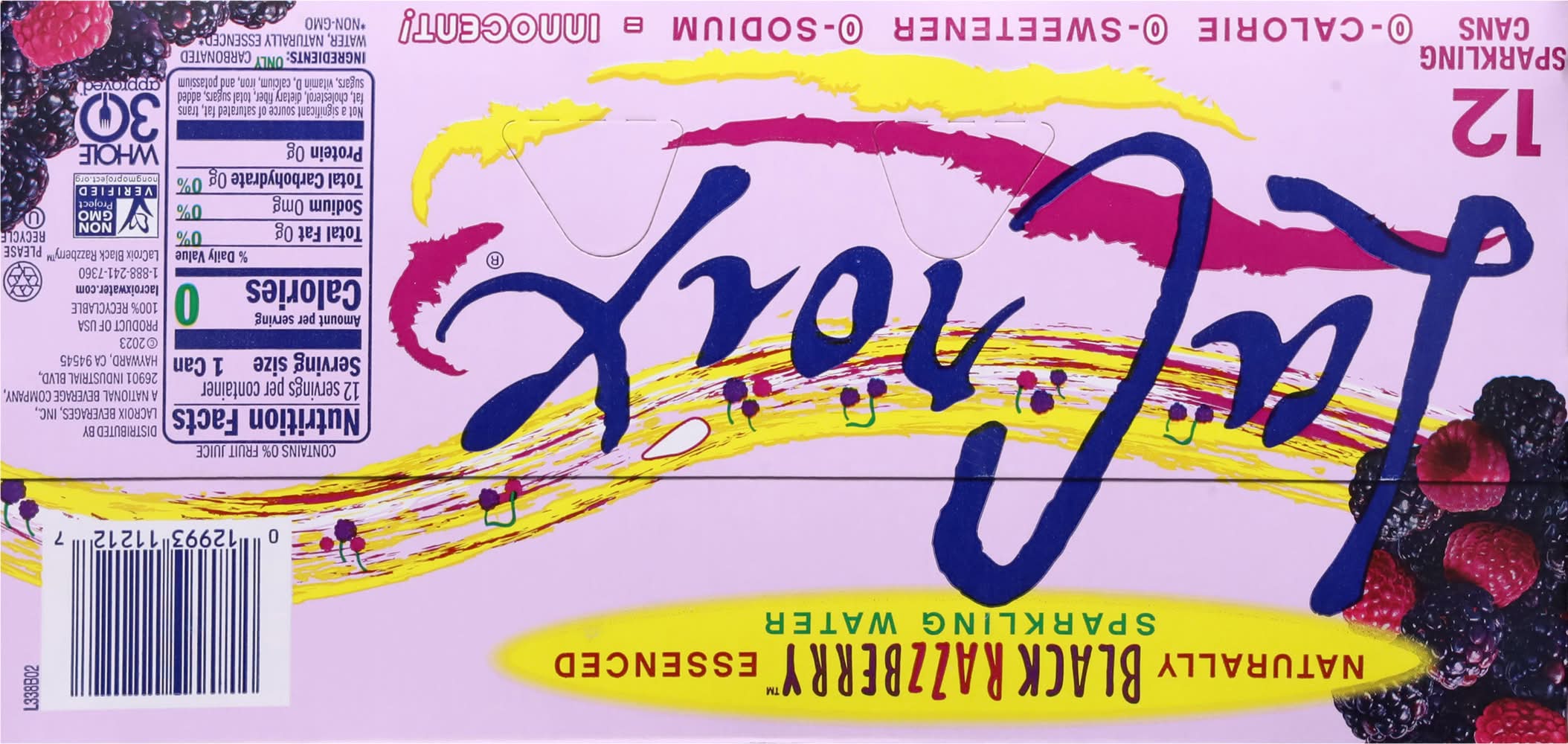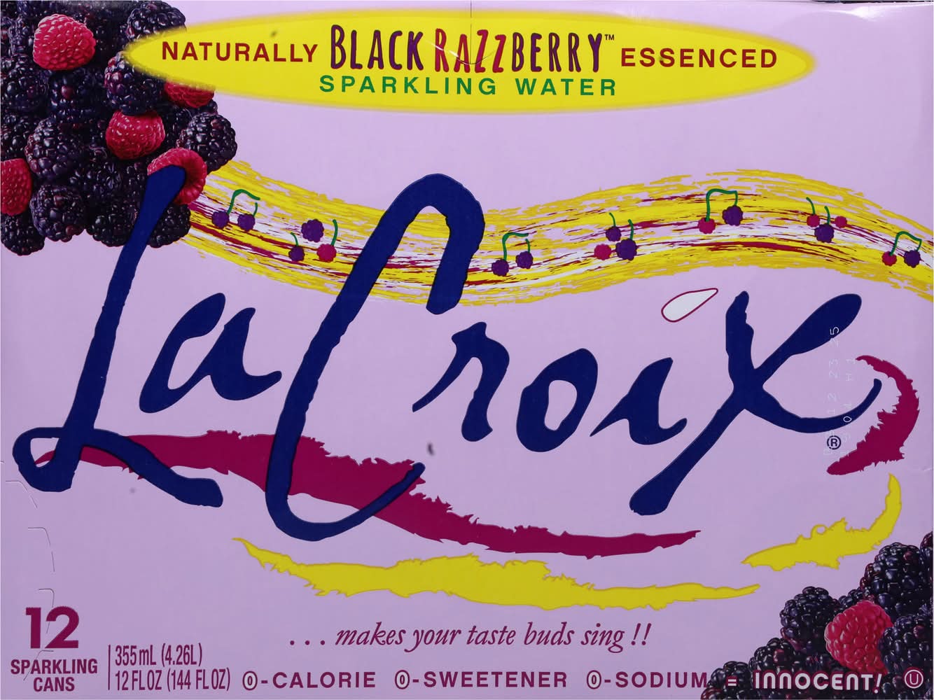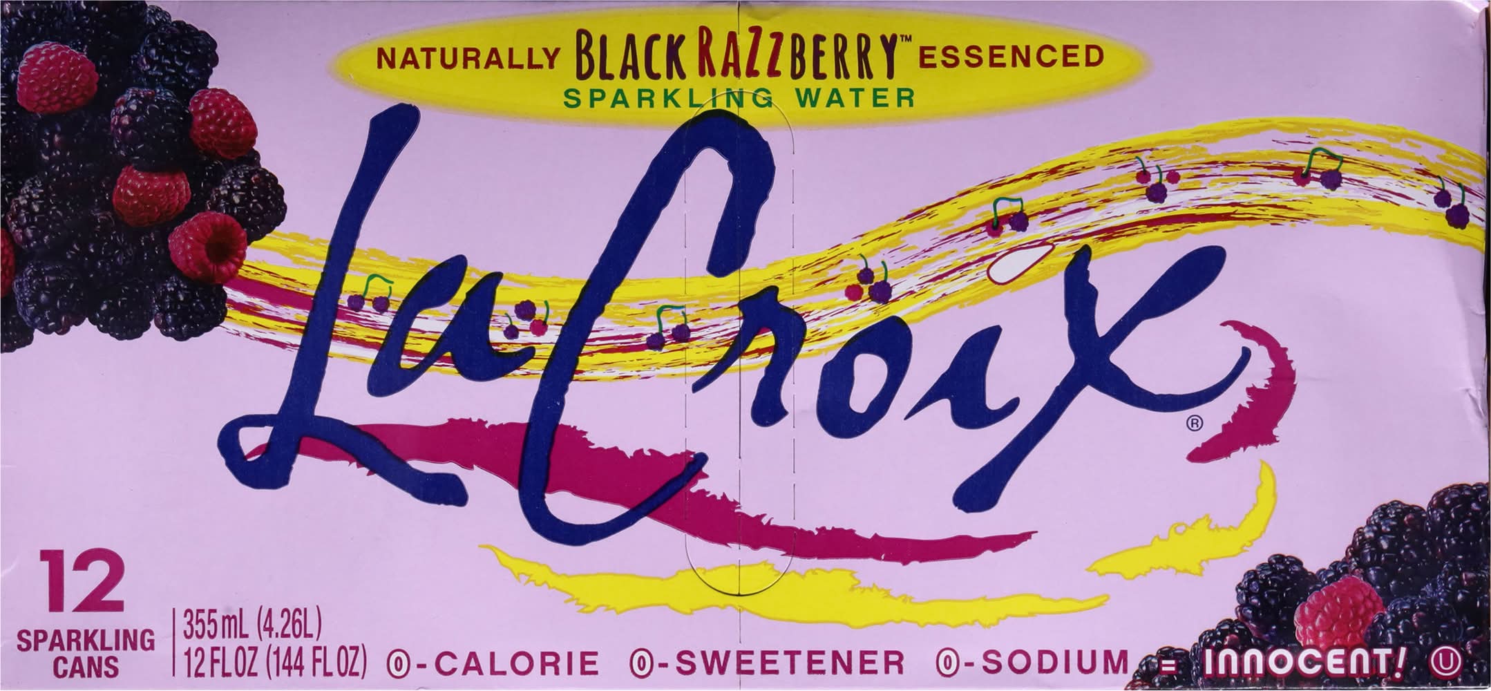 Sparkling Water, Black Razzberry • Pack size: 12 • Lacroix Beverages, Inc., 26901 Industrial Blvd, Hayward, CA, 94545 • Packaging: Reusable