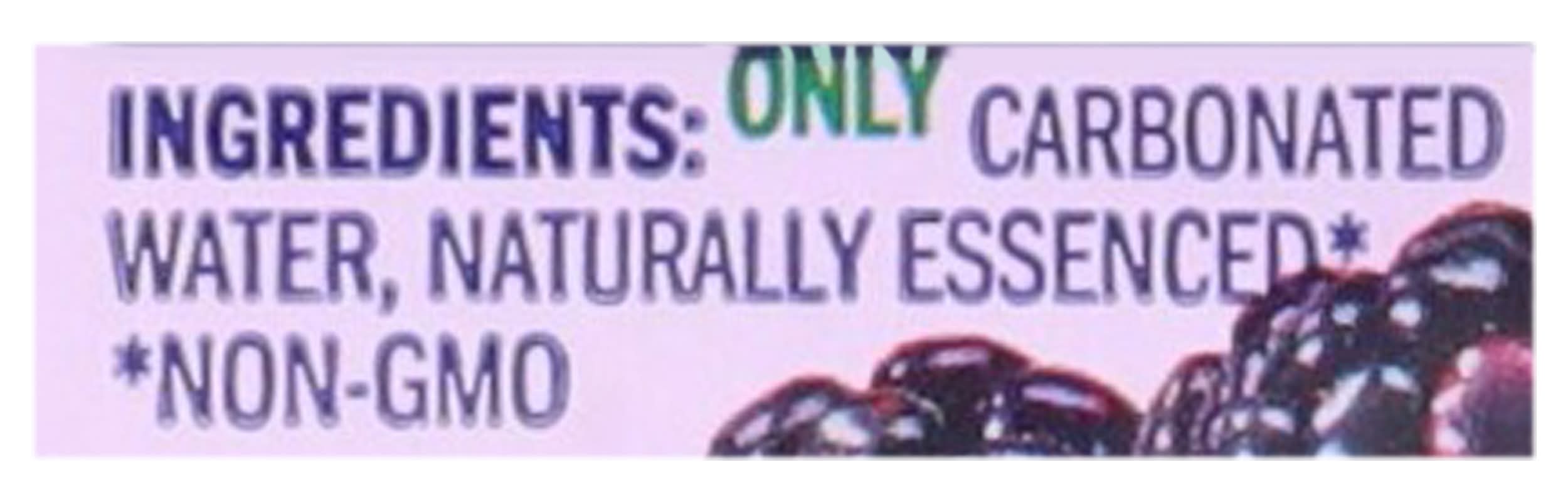 Ingredients: Only Carbonated Water, Naturally Essenced*. *Non-GMO