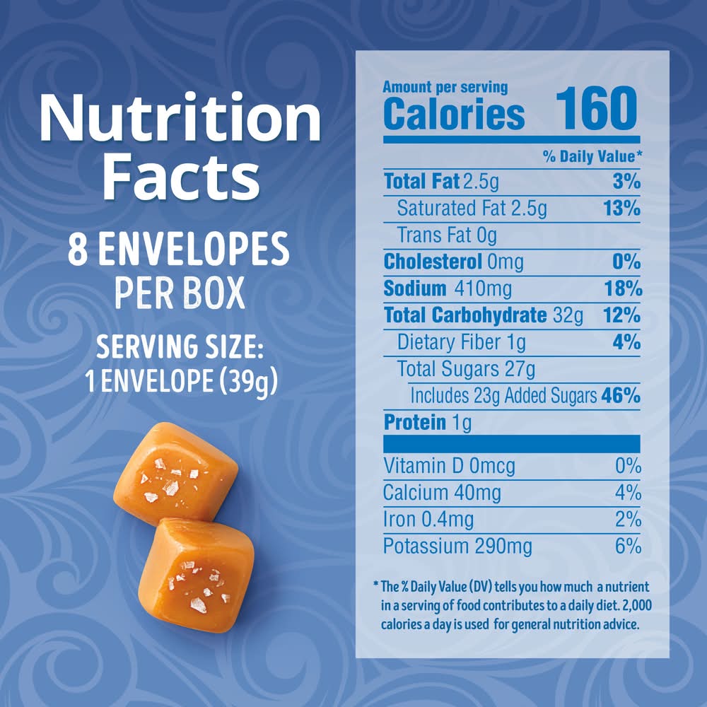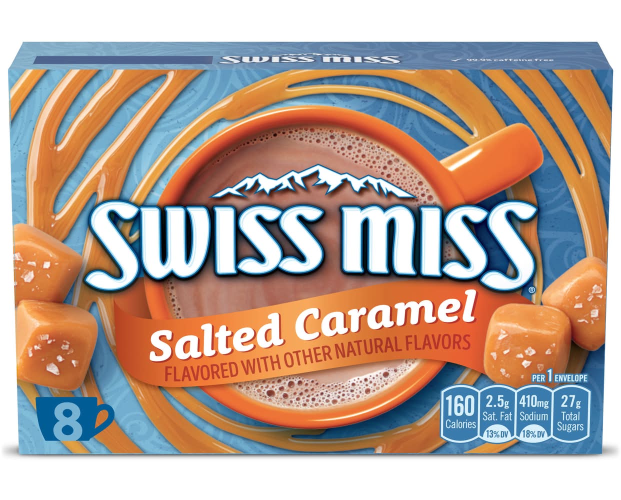 Swiss Miss Salted Caramel Flavored with Other Natural Flavors Hot Cocoa Mix is a sweet, creamy beverage for caramel and chocolate lovers of all ages. The salted caramel flavored hot cocoa drink mix easily transforms into a rich, creamy hot cocoa. This Swiss Miss Hot Cocoa Mix is packaged in portioned individual envelopes, making it easy to give everybody the perfect mug of delicious salted caramel hot cocoa. You won't miss your old hot chocolate. This hot cocoa powder is made with real cocoa and nonfat milk to give you that comforting, rich and creamy taste you expect from Swiss Miss and is a gluten free hot cocoa. Preparing a mug of this hot cocoa is easy. Empty into a mug, add 8 ounces of hot water (or milk for a richer taste) and stir. Enjoy a mug as part of your morning routine or as a sweet treat in the evening. You can use this cocoa mix in different ways. Try making a tasty iced cocoa drink to cool you down, or incorporate the hot cocoa mix into your recipes for brownies, cookies, cakes and more. Whatever you’re warming up to, know that Swiss Miss will give you everything you need in the palm of your hands.