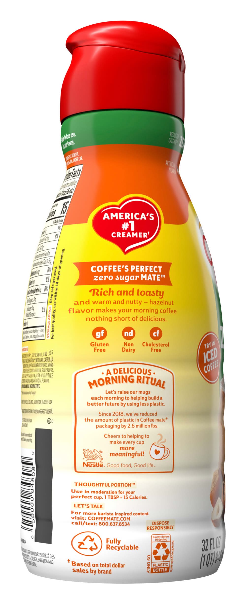 Taking You from Your Early Morning Grind to Your Late-night Fuel Up With Up to Sixty-three Servings. We’re Here for Your Coffee Mug, Your Iced Coffee Glass and Your Midnight Martini. Dietary Preferences? We Have Those Covered Too – Our Coffee Mate Liquid Creamer Is Cholesterol-free, Gluten-free, and Has Zero Sugar. • Flavor: Hazelnut • Packaging: Reusable