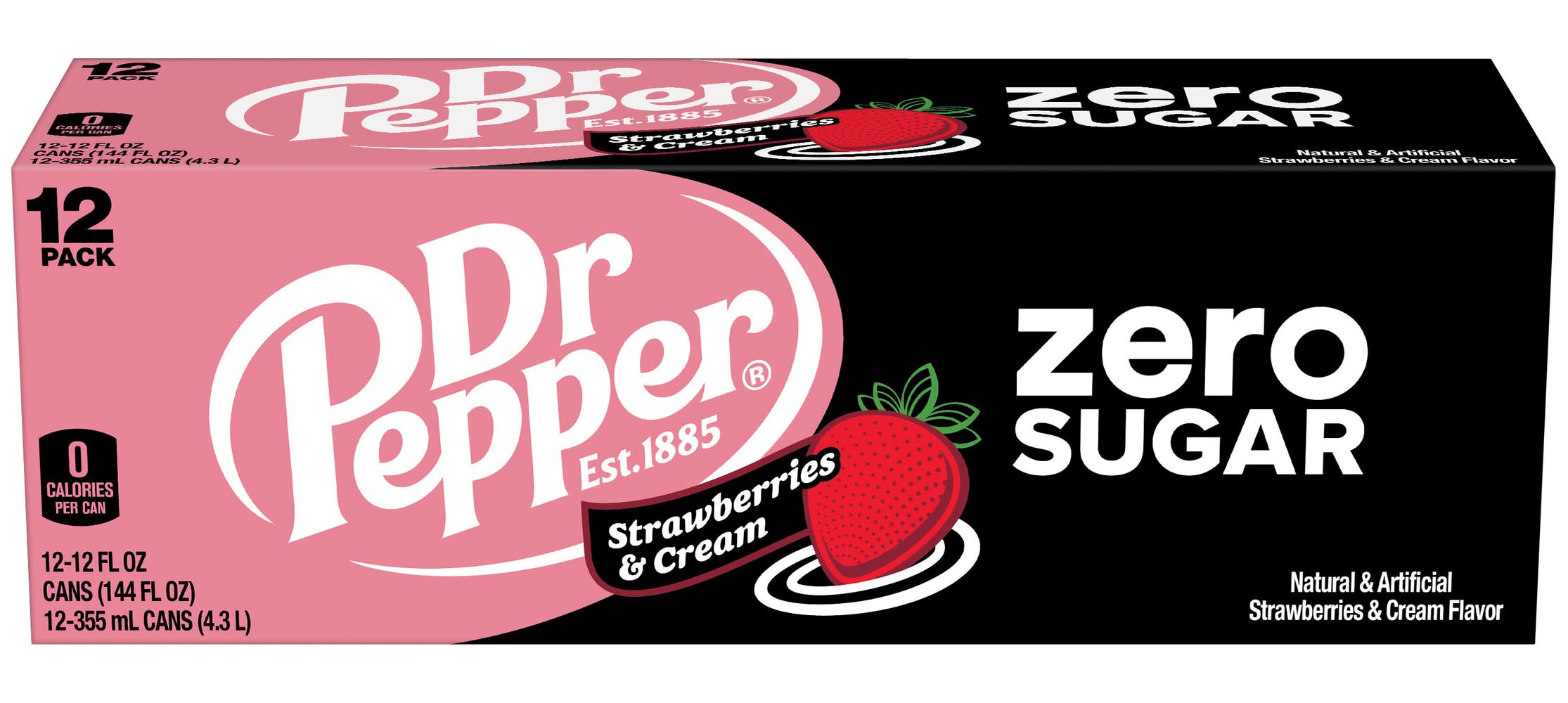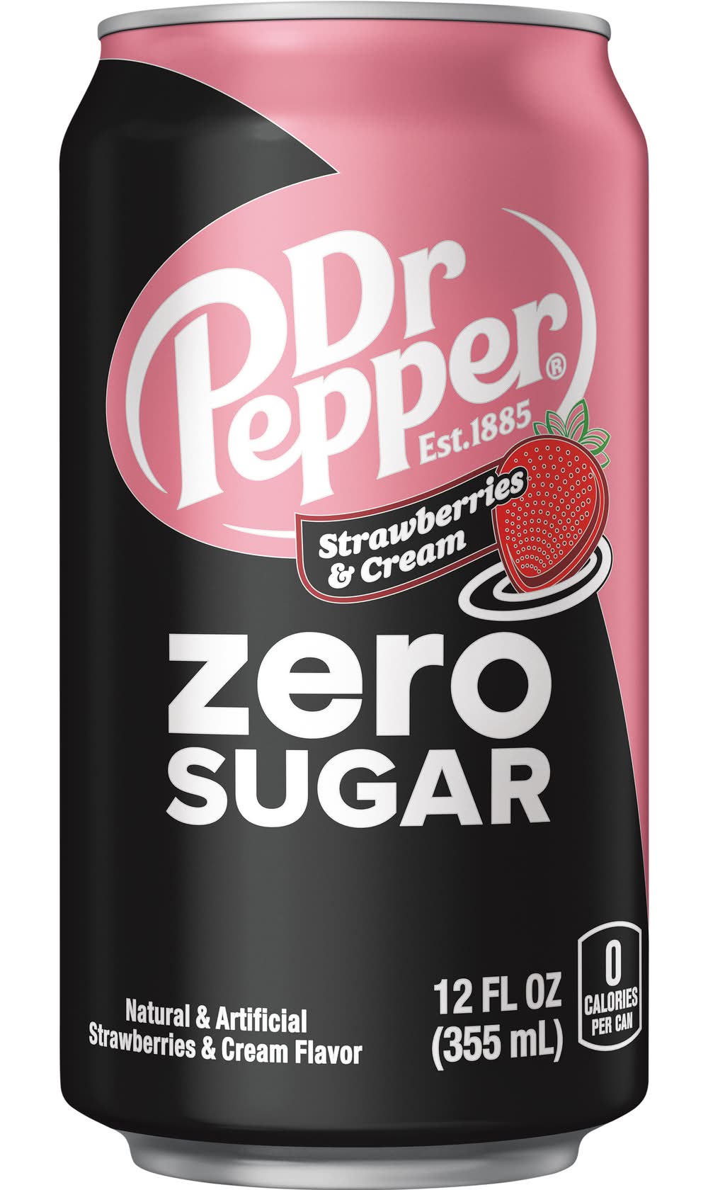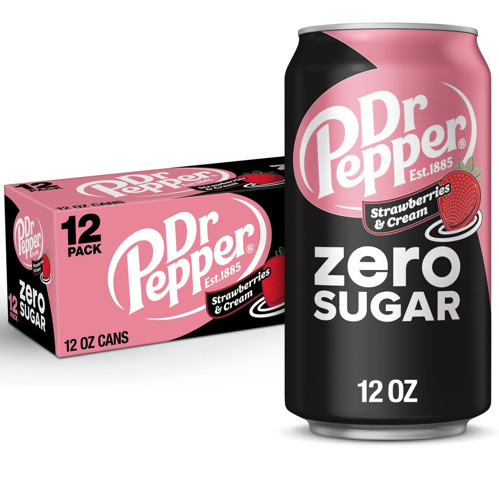 Dr Pepper Zero Sugar Soda, Strawberries-Cream (12 x 12 fl oz)
